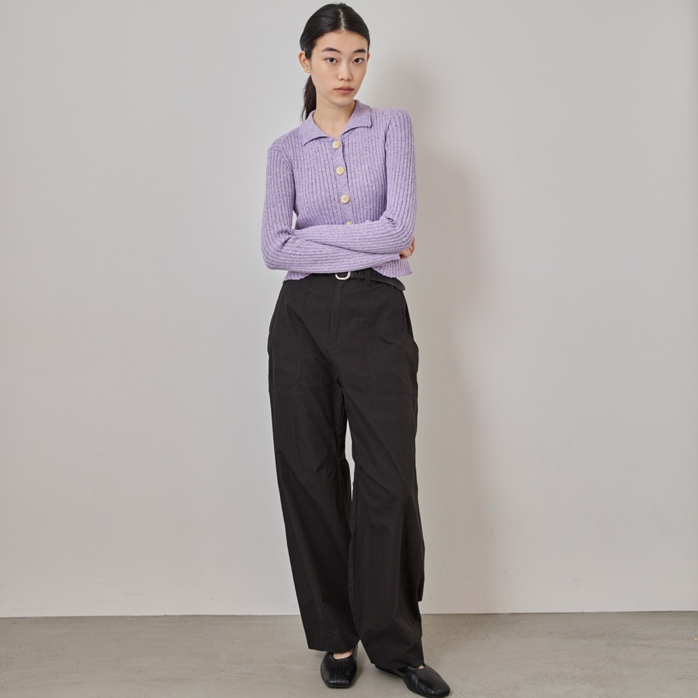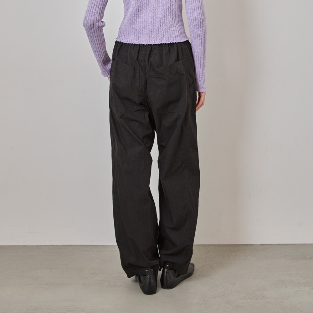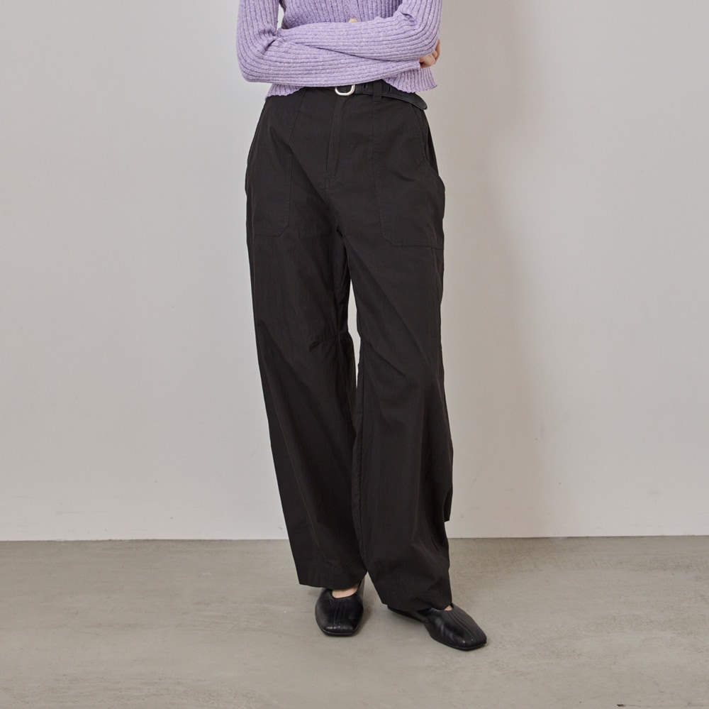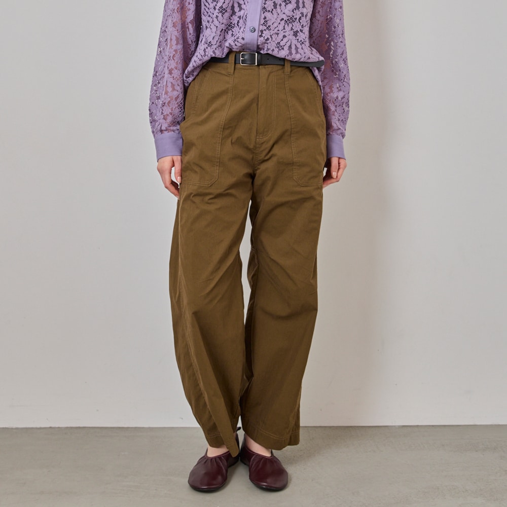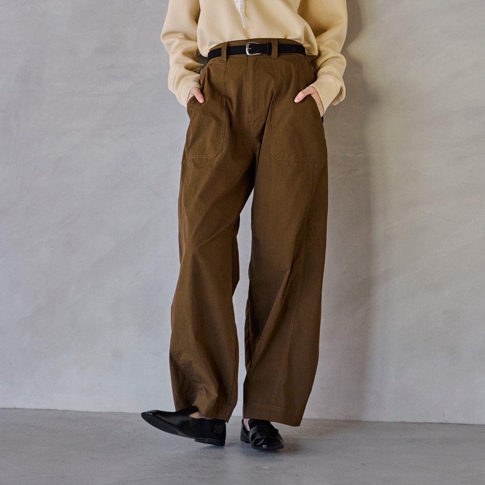 ・裾にカーブをつけたバレルシルエットのカーゴパンツ。立体的なフォルムで、今っぽいボリューム感を演出