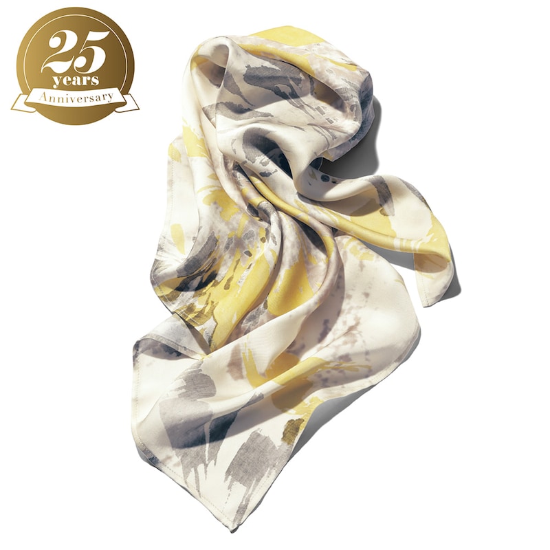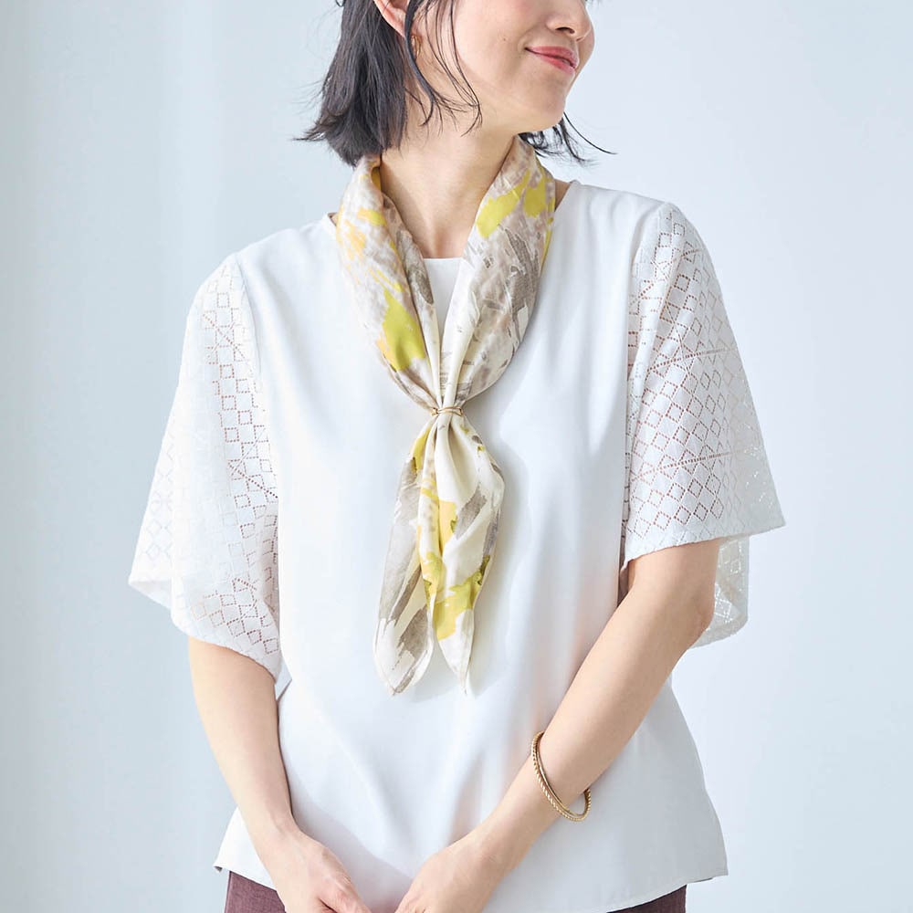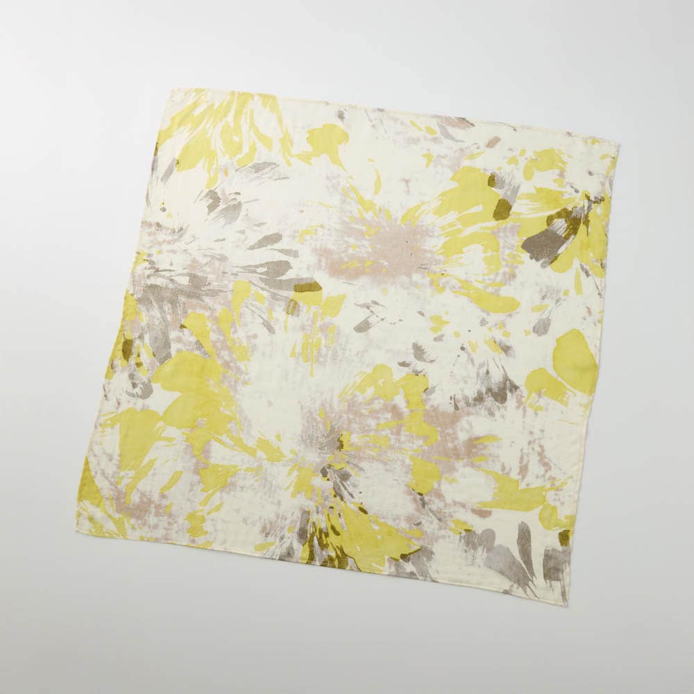 ・水彩画のようなアートな花柄をのせた華やかなスカーフ
