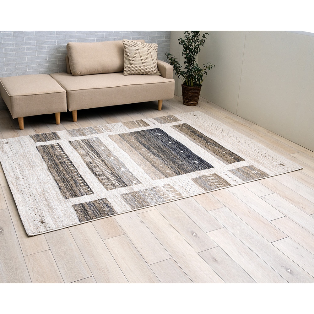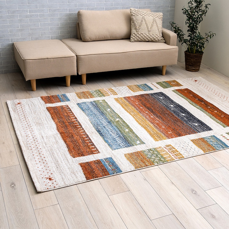 抗菌防臭・消臭で安心、くすみカラーのギャベ調ラグ