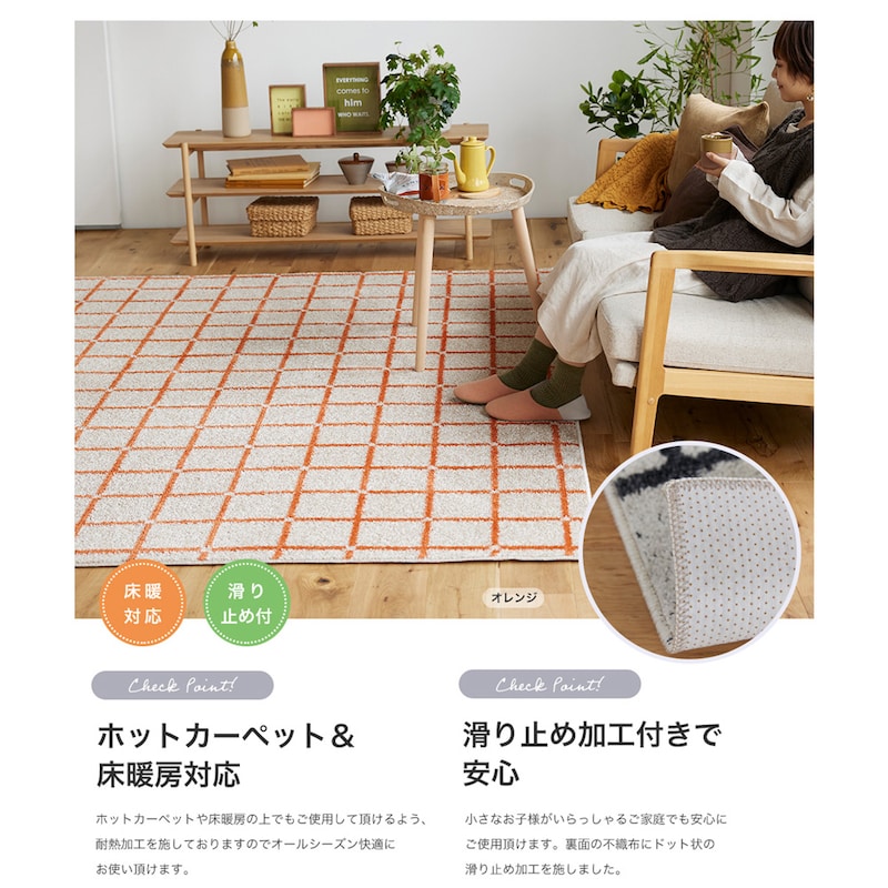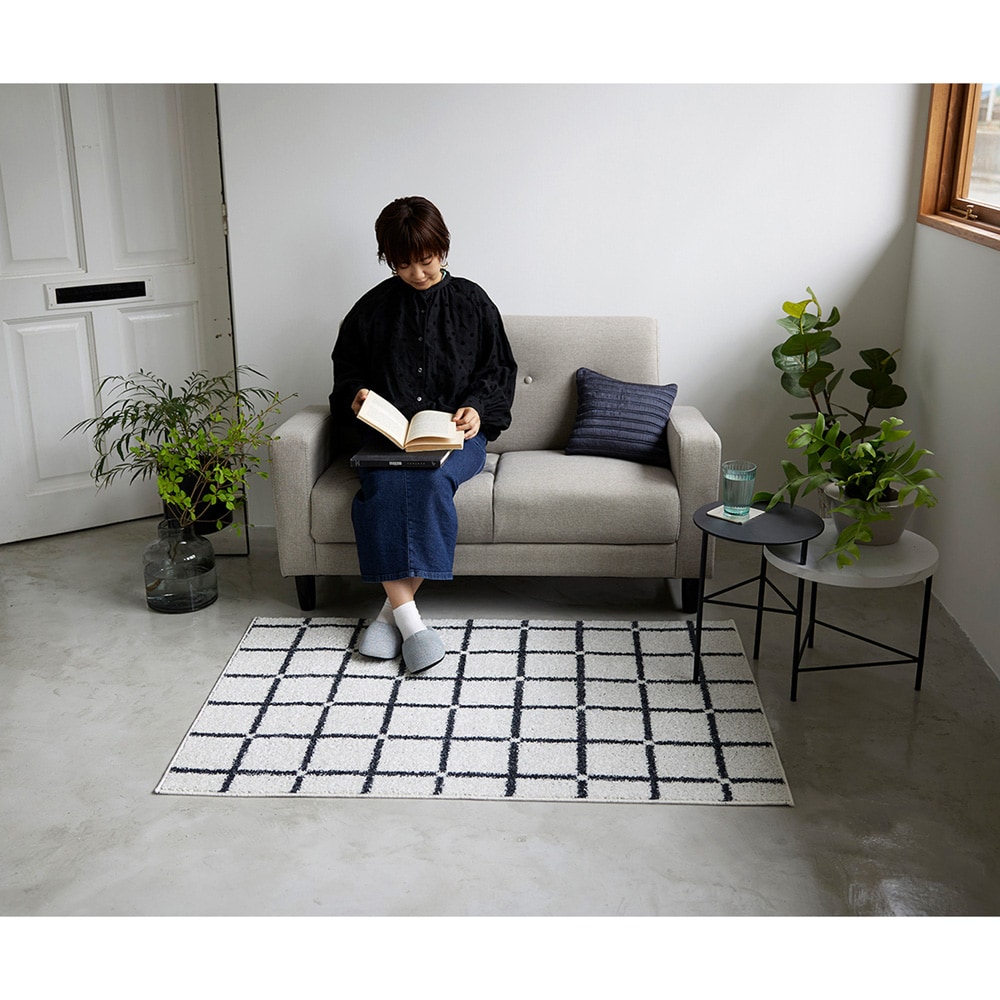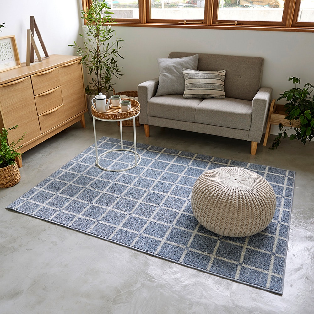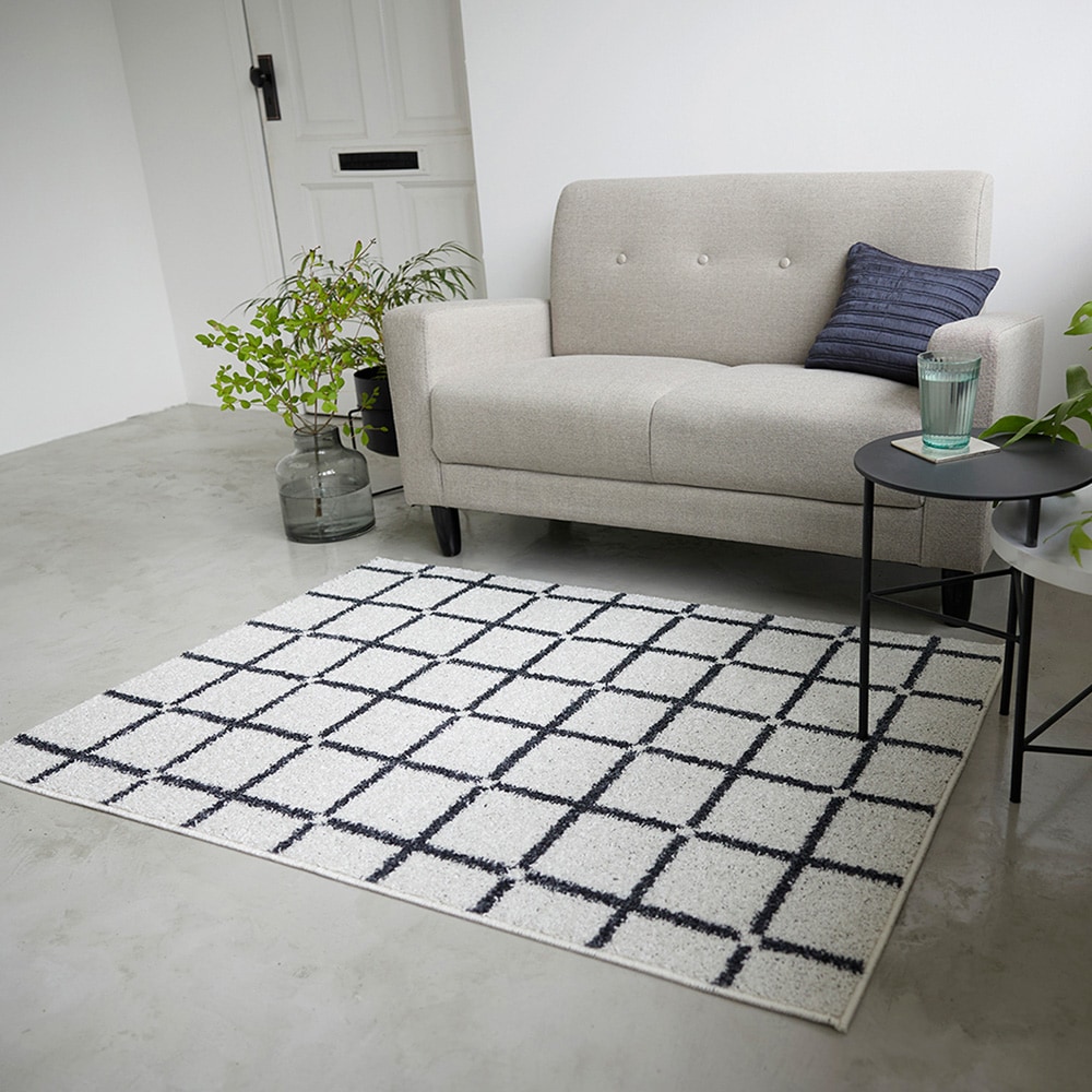ラインチェックデザインの防ダニラグ(オセロ)[日本製]