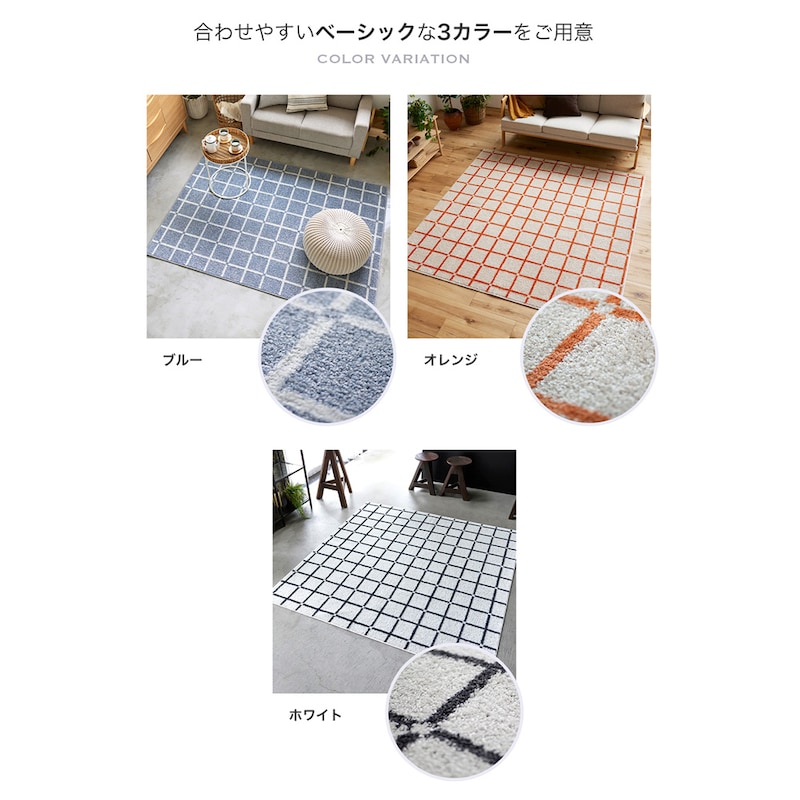 ●リビング用の大きなサイズはもちろん、在宅デスク下などのパーソナルスペースに使用できるミニラグサイズも展開しています