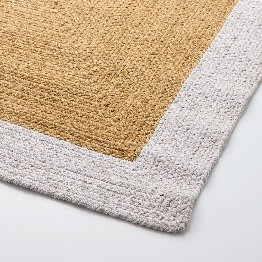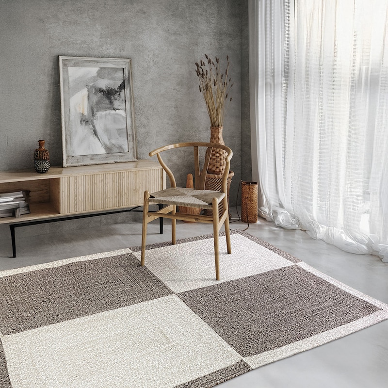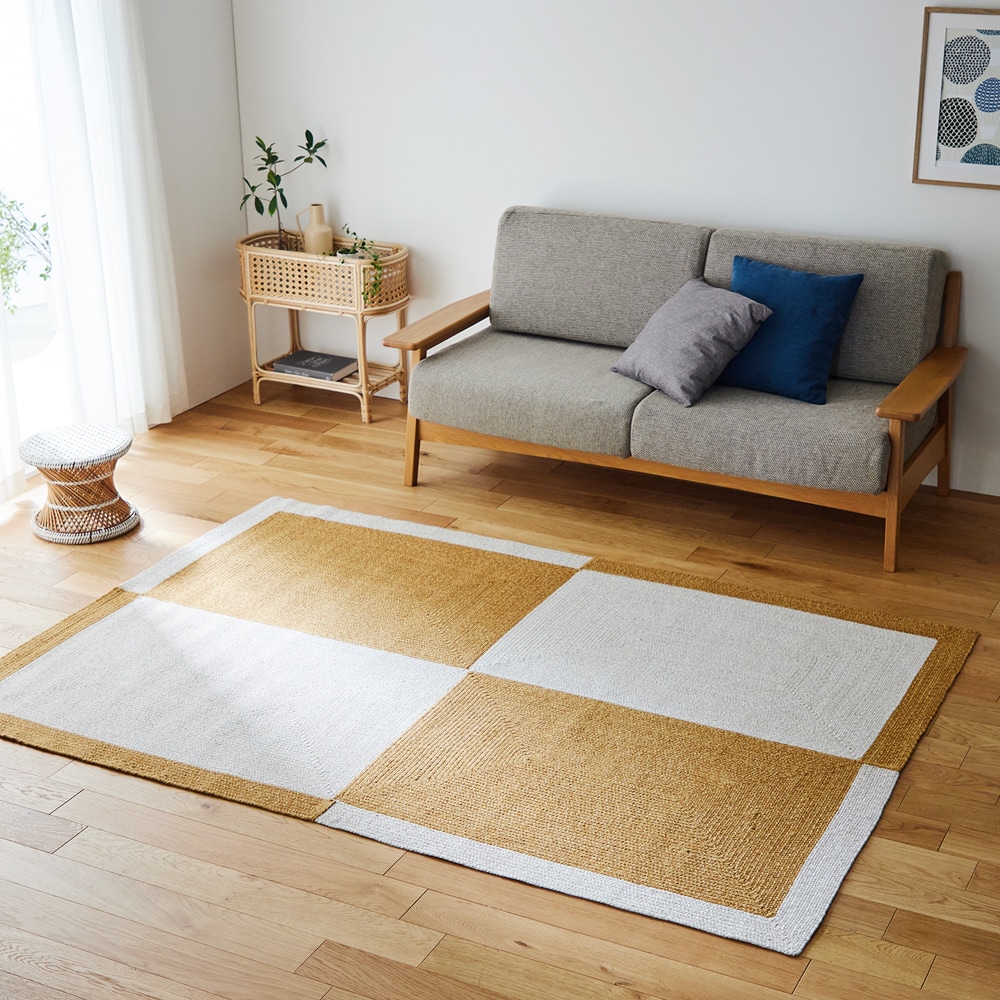 薄手で軽く扱いやすい綿100%のスクエアデザインラグ
