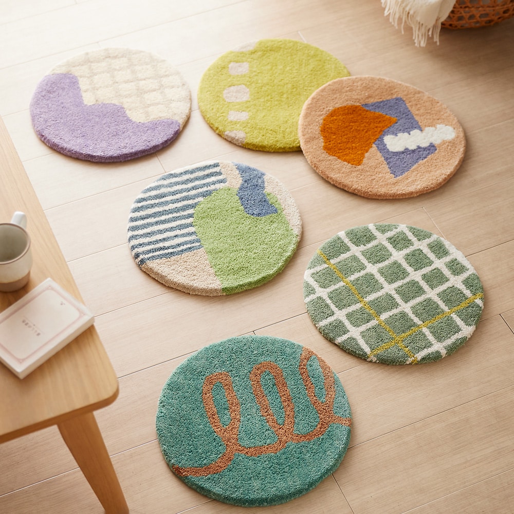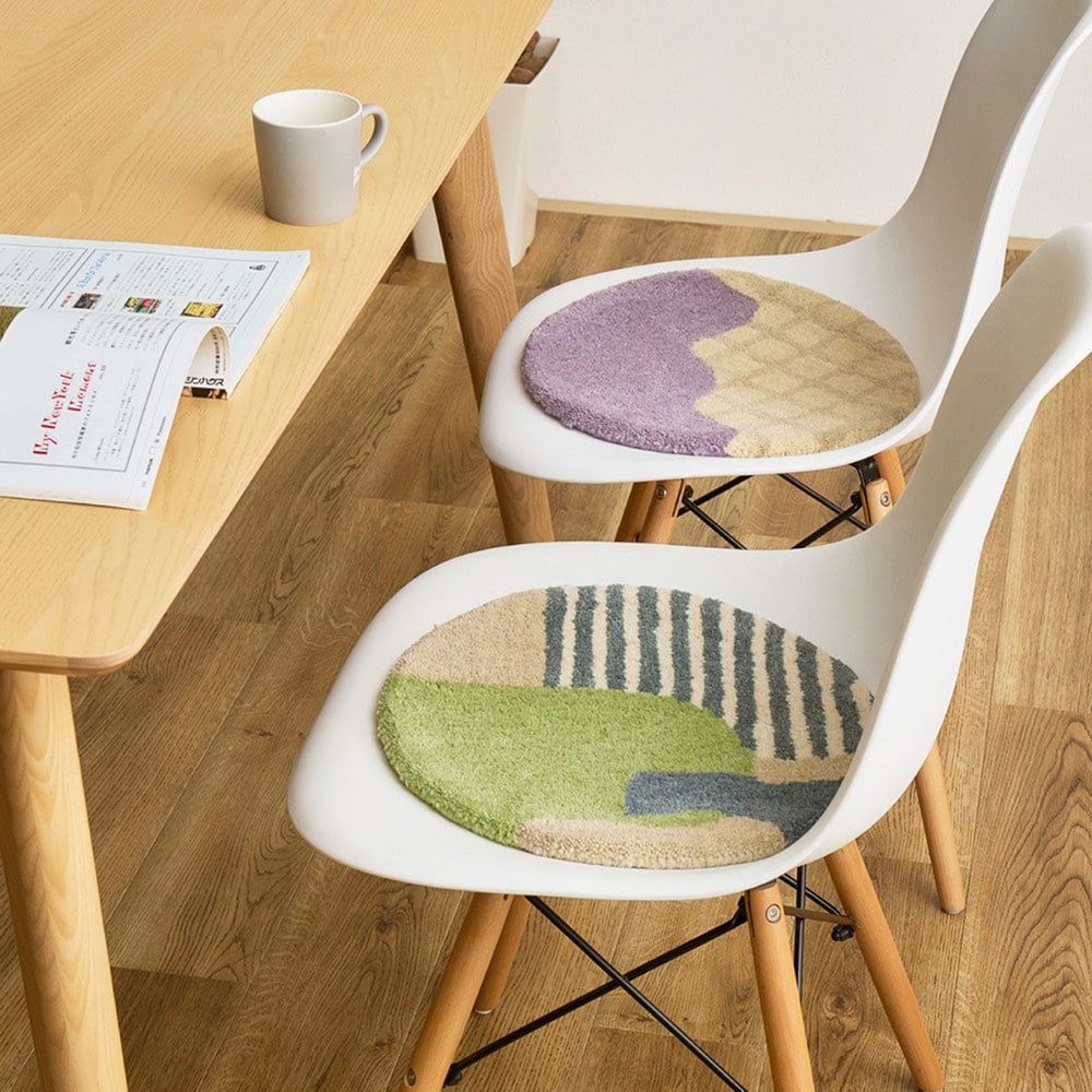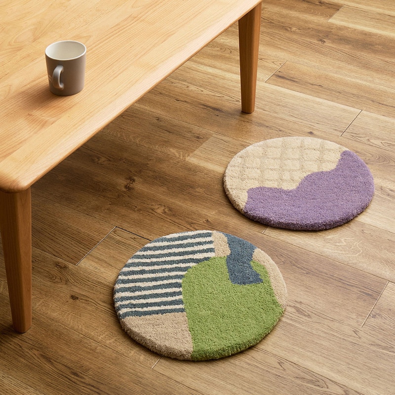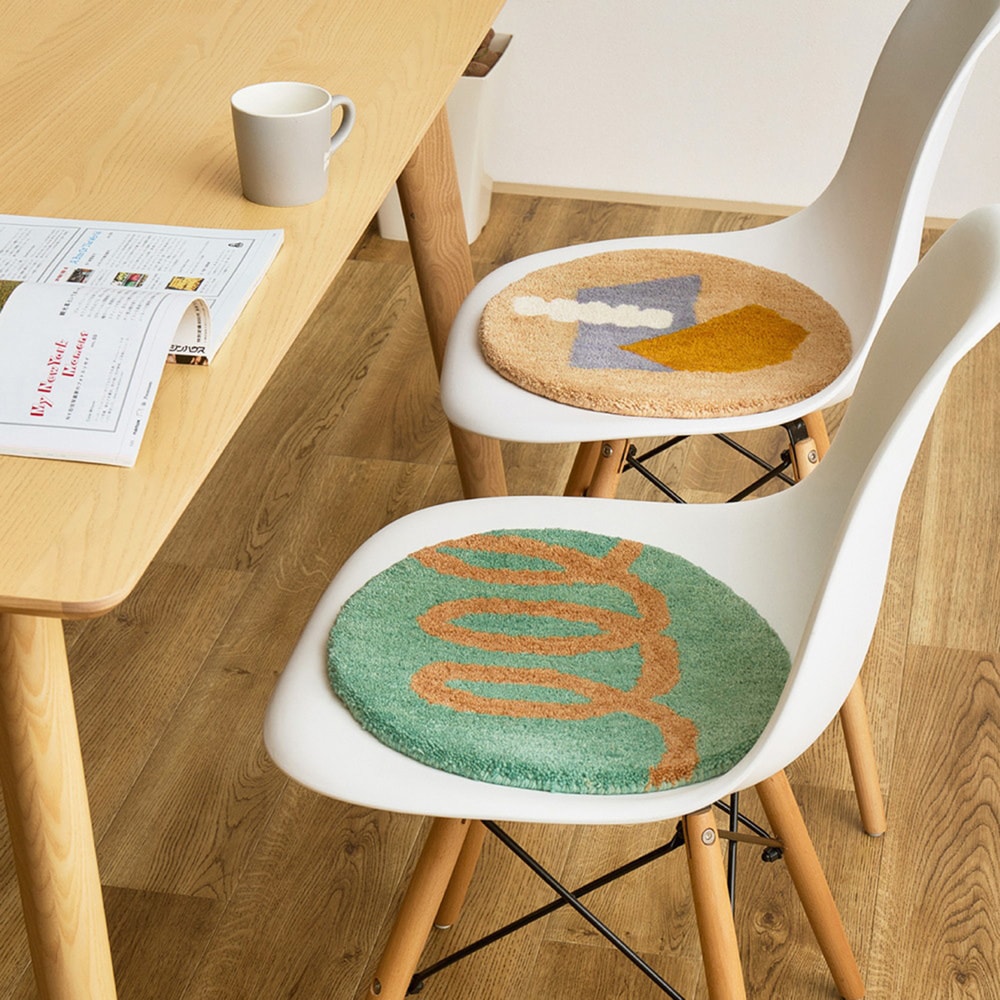 ●リビングやダイニングの椅子に敷くだけでなく、玄関マットやベッドサイドラグ、ペット用マット、観葉植物の敷物など、インテリア雑貨として多用途に活躍します