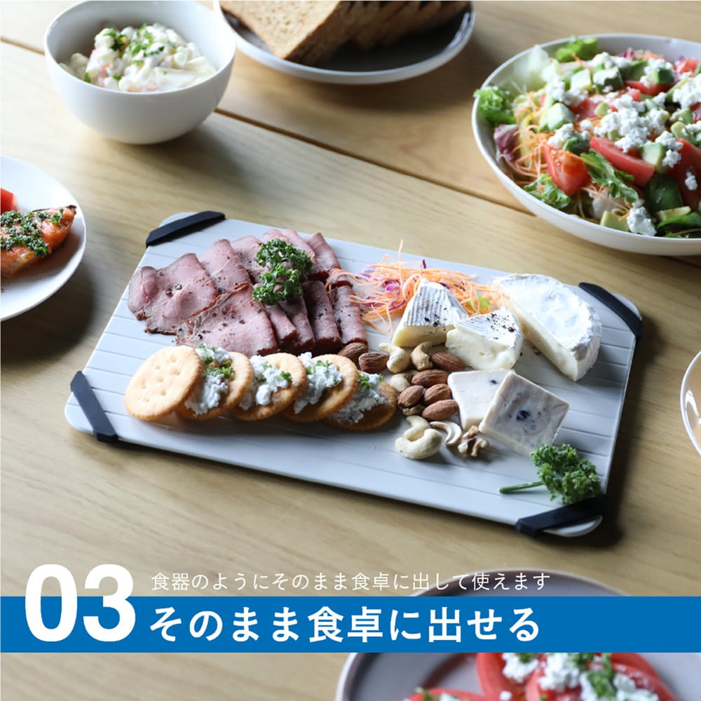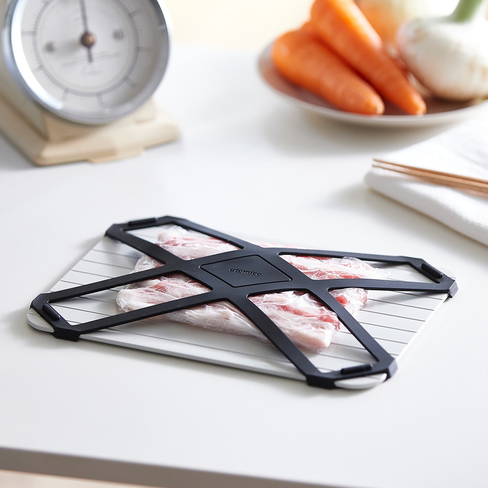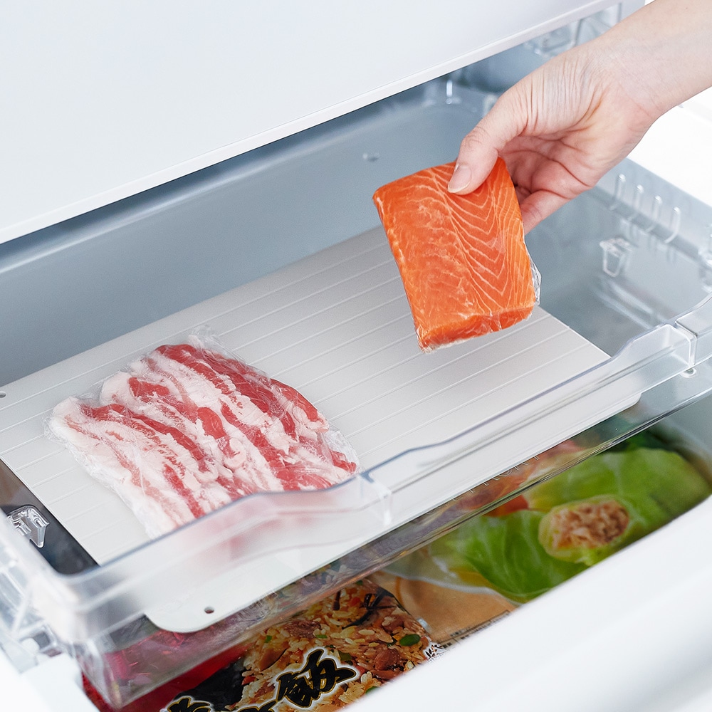 ●置くだけで食材を急速解凍してくれる、アルミ製の解凍プレートです。
