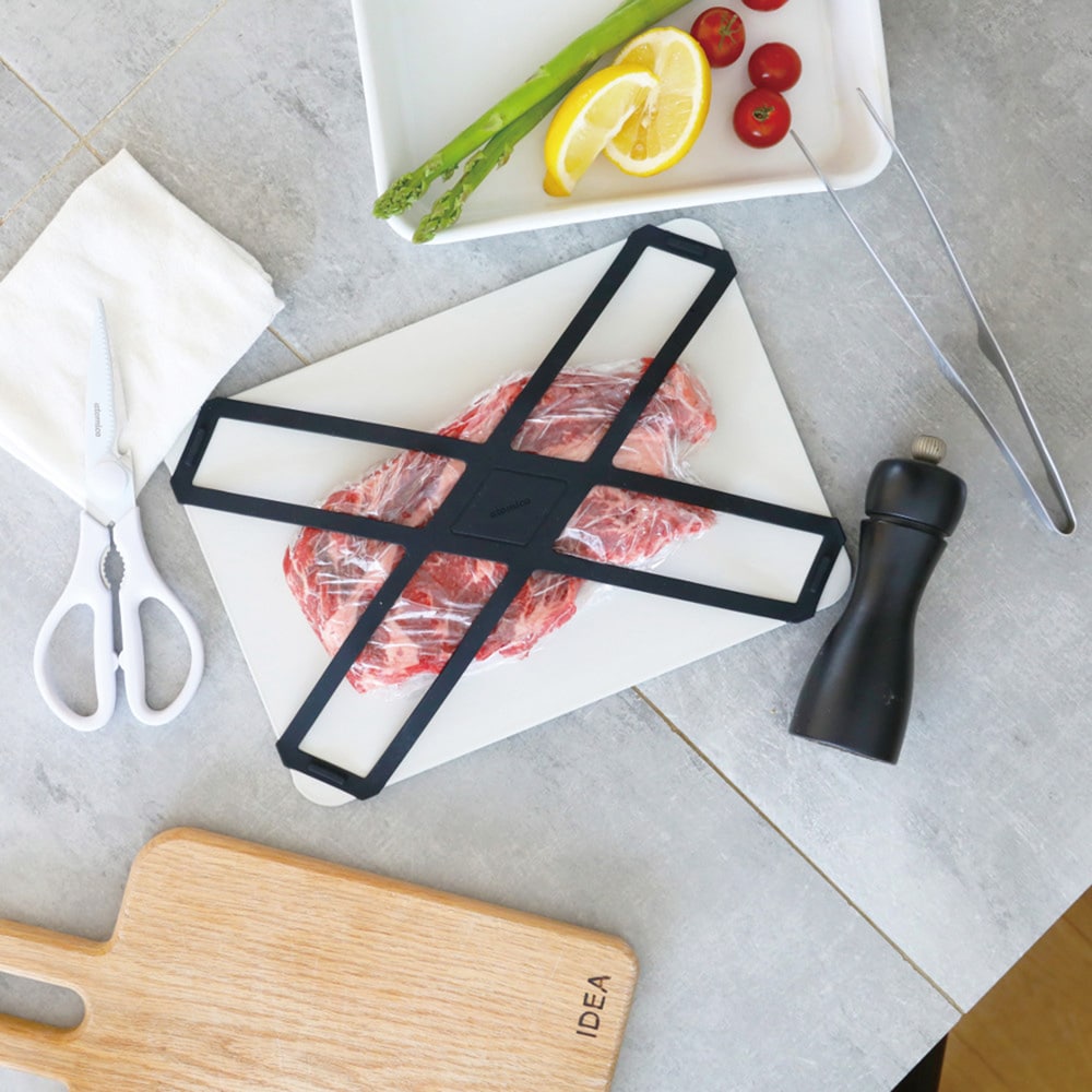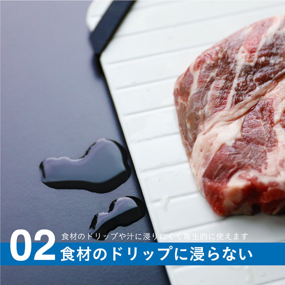 バンドで抑えてさらに解凍速度アップ!置くだけ急速解凍プレート