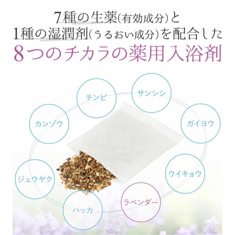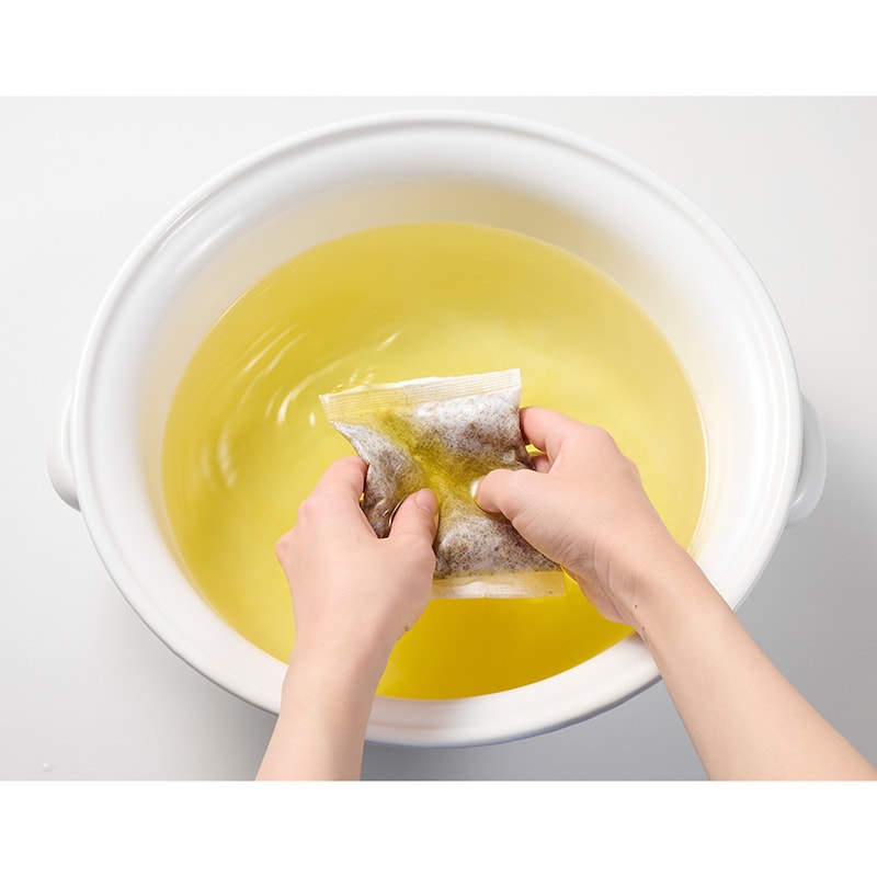 ●ご家庭のお風呂のお湯(約200L)にティーバッグを破らずにそのまま本品1包(15g)を入れ、お湯の中で軽くもんでお使いください。