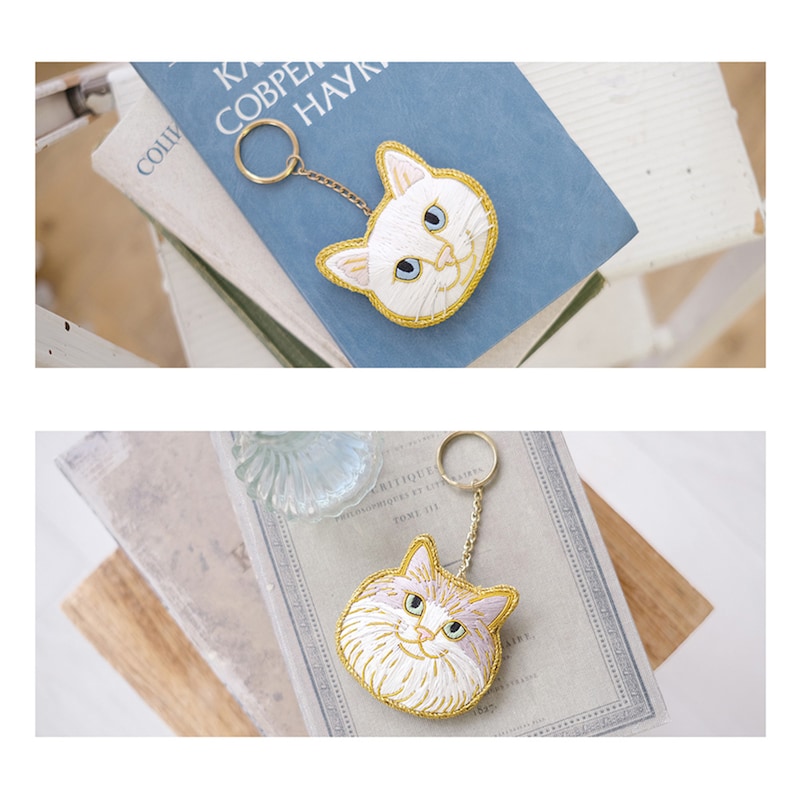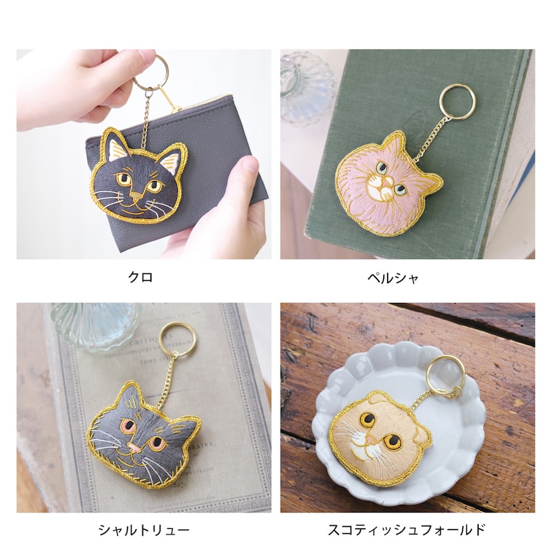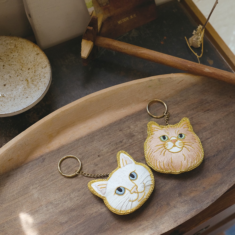 ●ザリ刺繍で丁寧に仕上げた、手仕事のぬくもり溢れる猫の表情