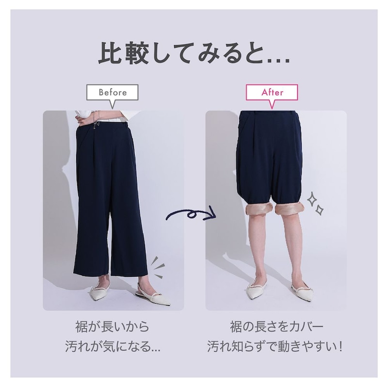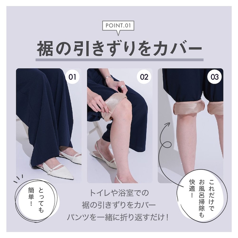 ・トイレやお風呂掃除でズボンの裾が汚れるのが気になる