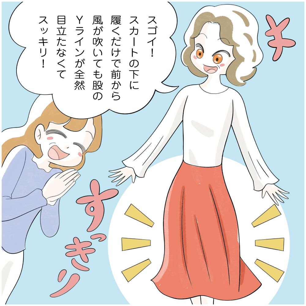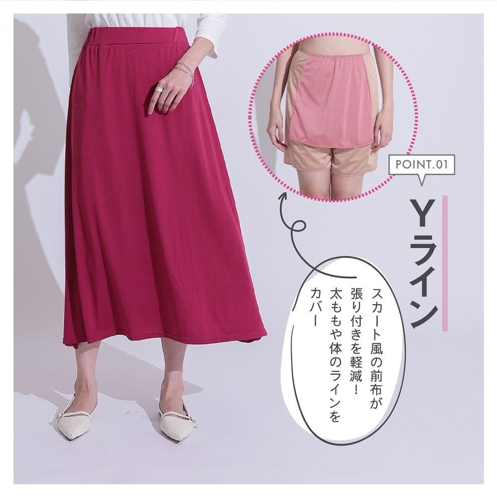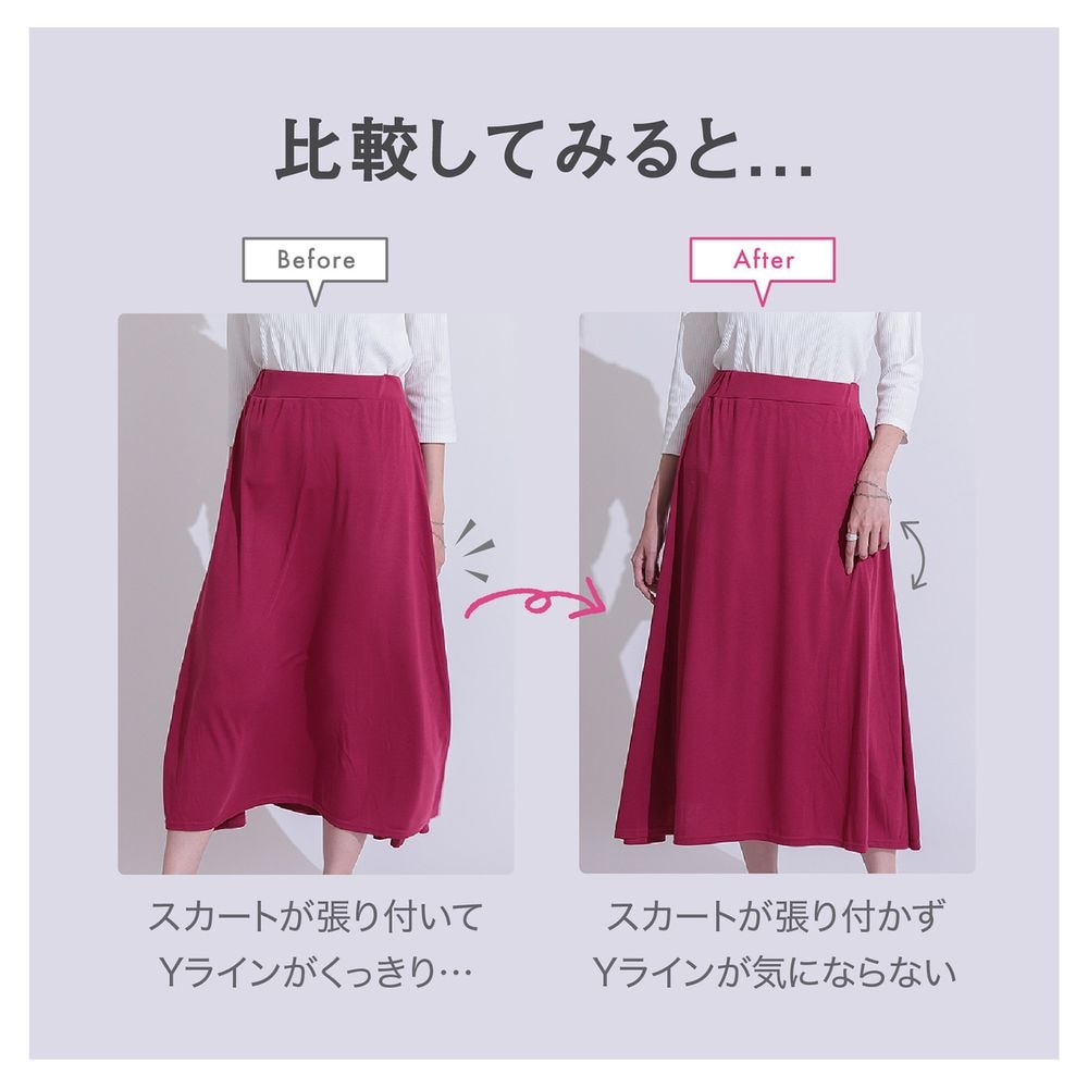 静電気が起こりにくい生地だからスカートがまとわりつくのを軽減。