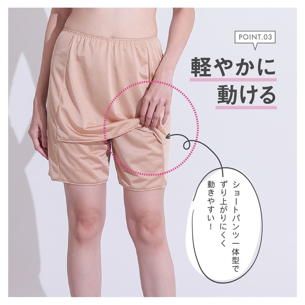ショートパンツ一体型でずり上がりにくく動きやすい!