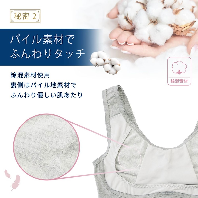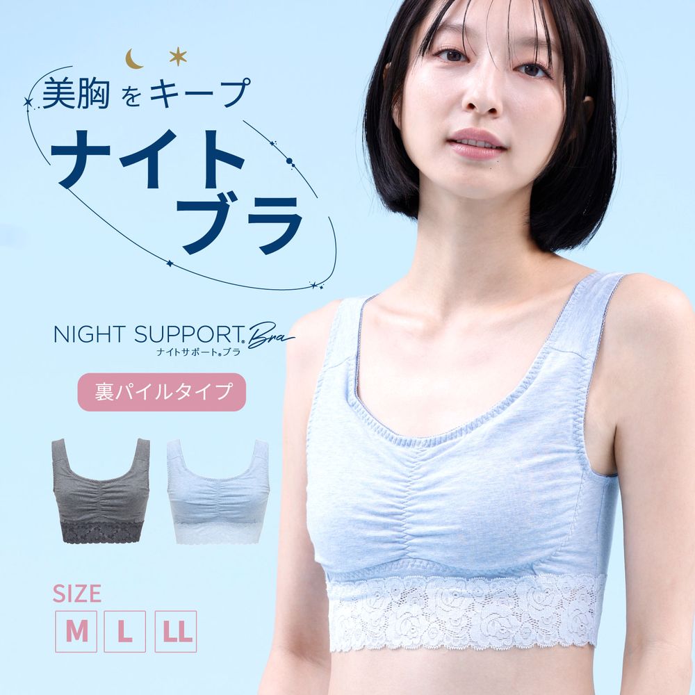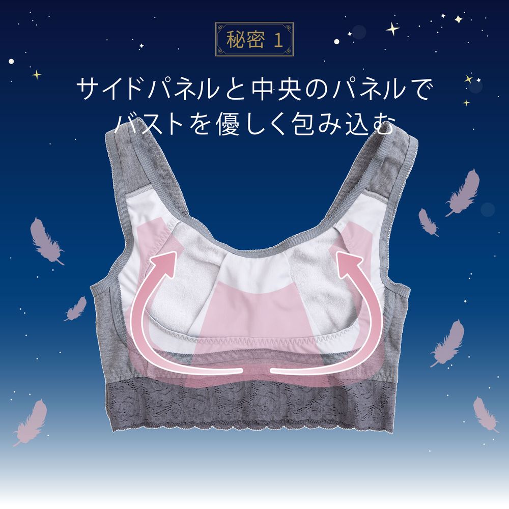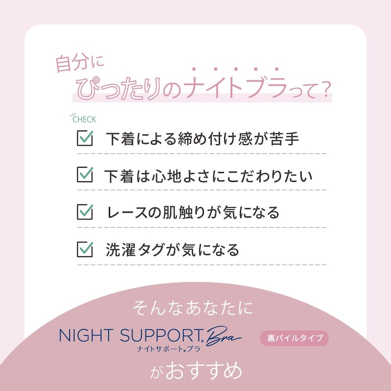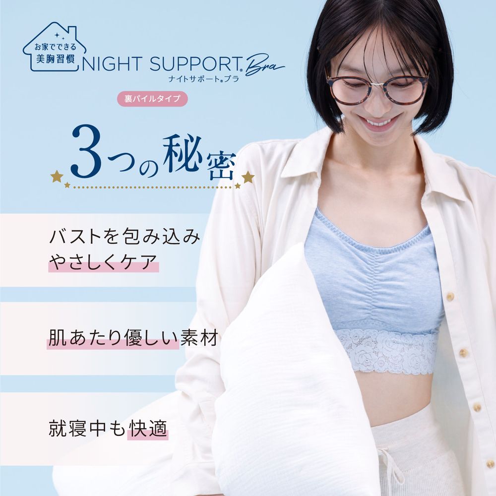 裏パイルタイプのナイトサポートブラは、就寝時のバストを包み込んで、