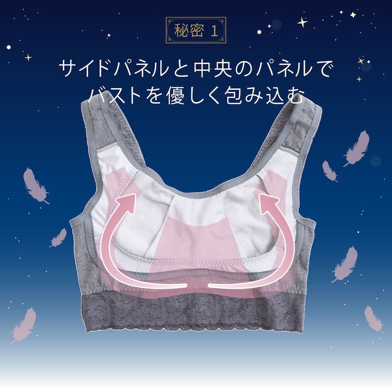 サイドパネルと中央のパネルでバストを優しく包み込みます。