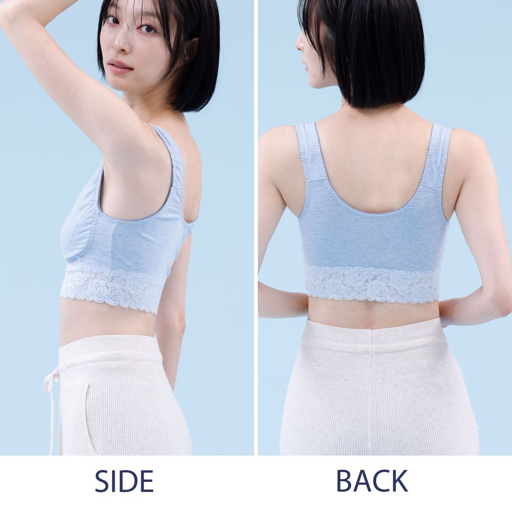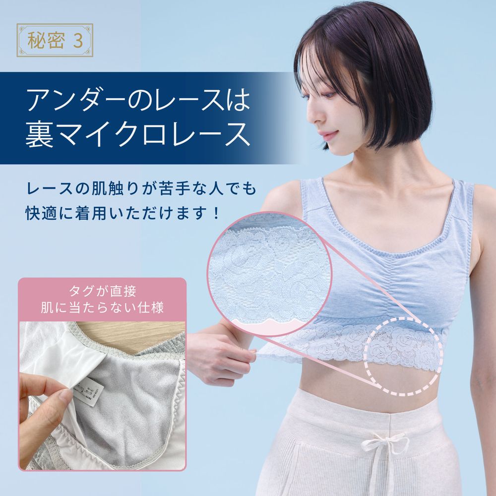 アンダーのレースも、裏マイクロ素材のレースを使用しているので、レースの肌触りが苦手な方でも快適に着用いただけます。