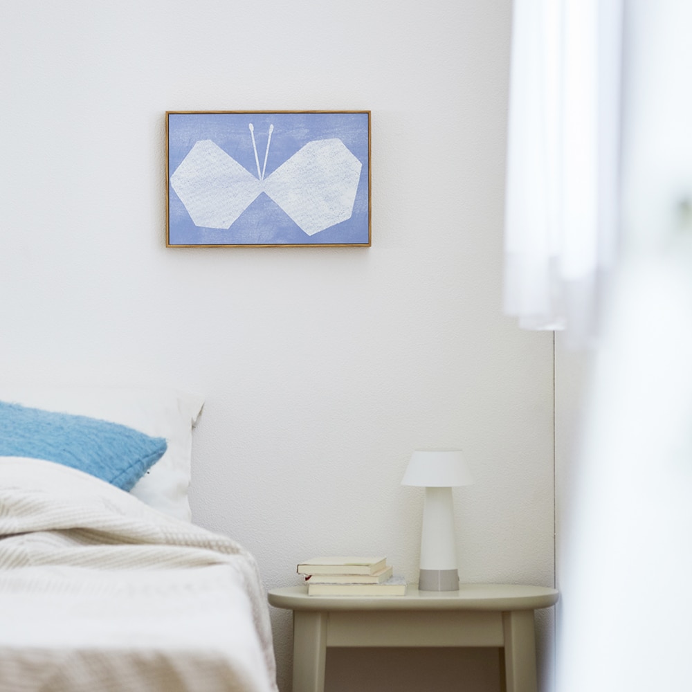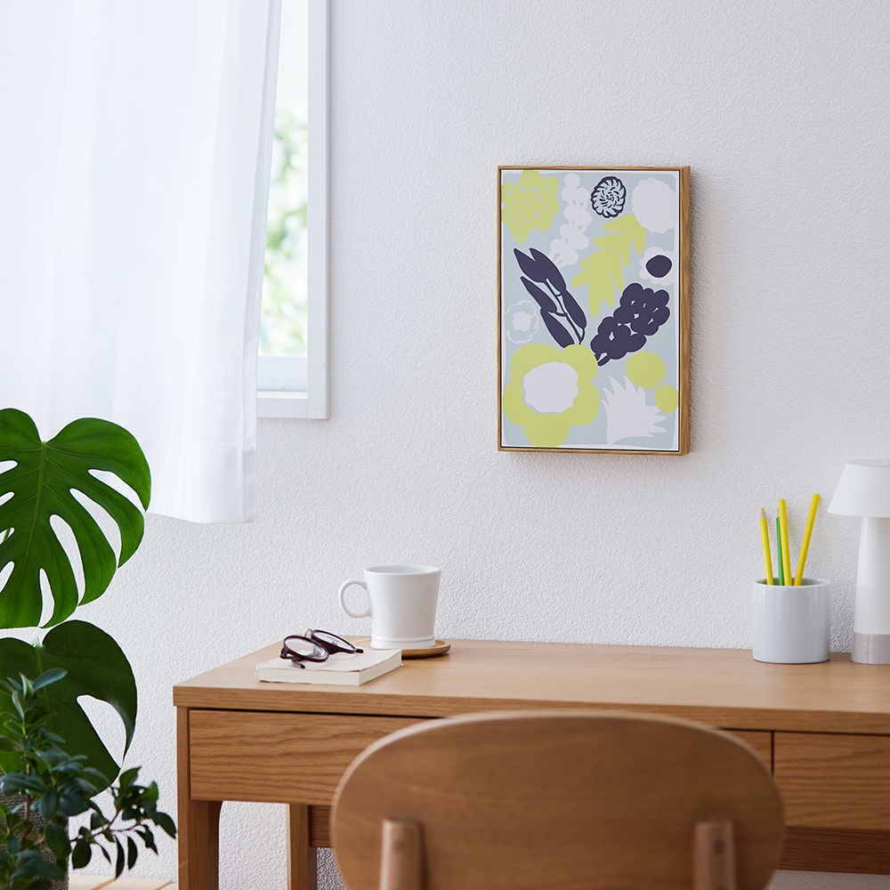 ひと目で、良さそうと想像し購入しましたが、大きさもあるし絵がインパクトあり過ぎて、家のどこにも馴染みませんでした。ブルー系ってむずかしいのかもと思いました。届いた当初、シンナー臭くてびっくりしました。