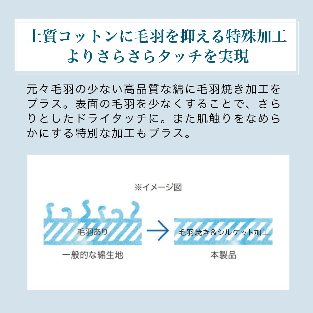 ●表地は高品質のコットンに毛羽焼き加工とシルケット加工を施したフラットな風合い
