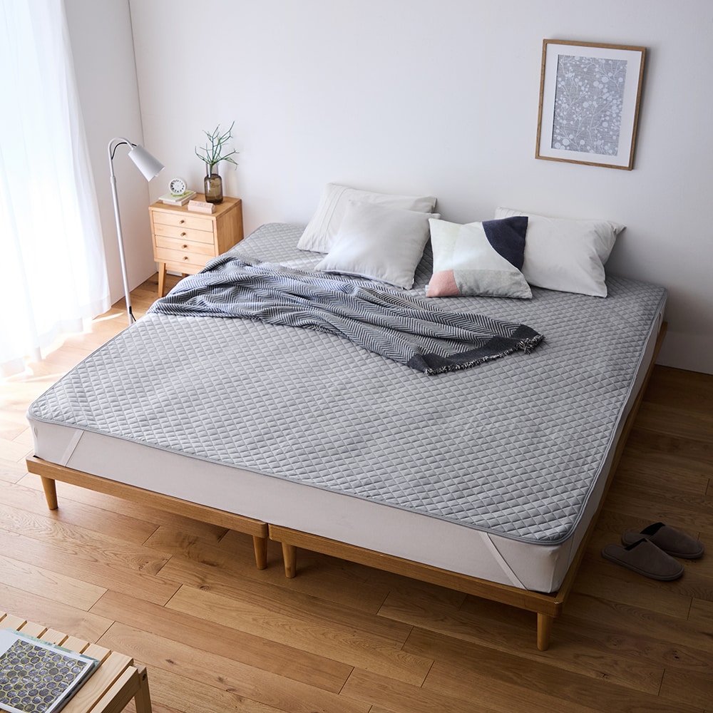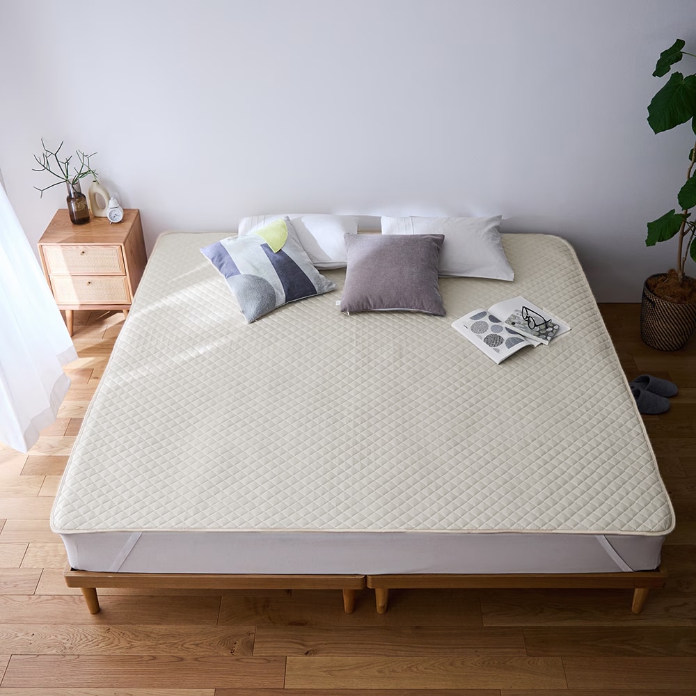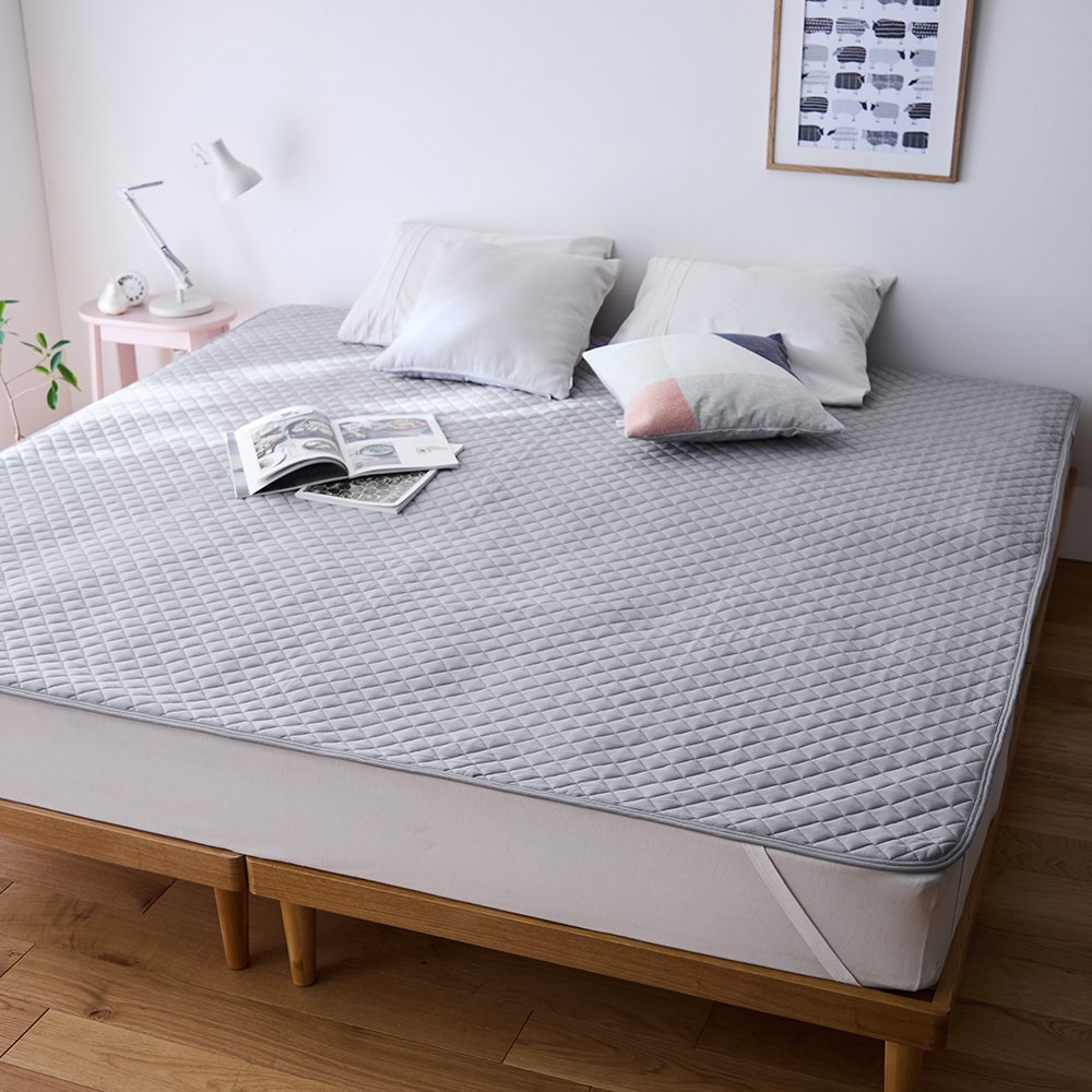 我が家はシングルの敷布団を2枚並べて寝ており、これまではいつも真ん中の隙間に子どもが沈んでいましたが、これを買ってからどこでも快適に寝られるようになりました!程よく厚いので繋ぎ目も気になりません。また、触り心地がとてもよいです。ホテルの布団に寝ている気持ちになれます。冷感は、涼しい日ほどひんやりを感じます。暑い日は、それほどひんやりとは感じませんが、それでもサラサラした肌触りなので快適に寝ることができます。それよりも綿素材で汗を吸ってくれることが優先なので、満足です。