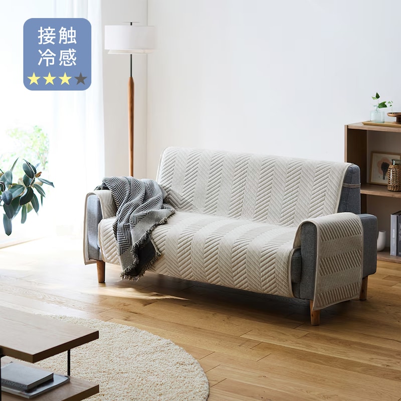 グレージュは明るめのきれいな色でした。接触冷感は余り感じませんが、カバーとしてはいいとおもいました。ひもは背もたれのところはいいのですが、底二か所が結びにくいのが残念でした。
