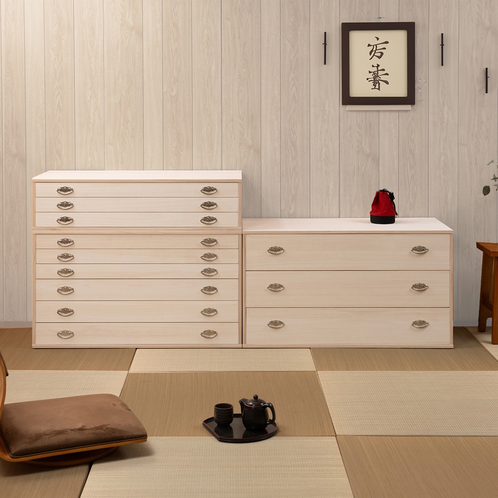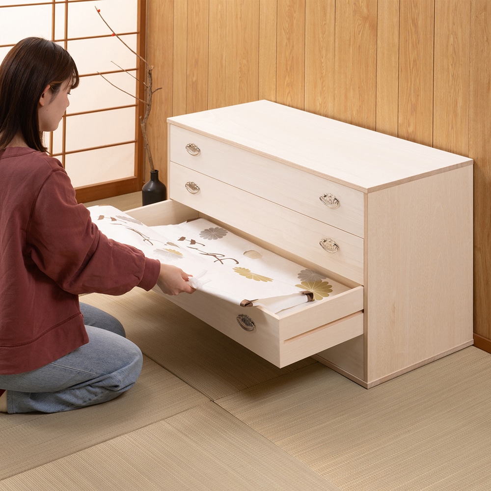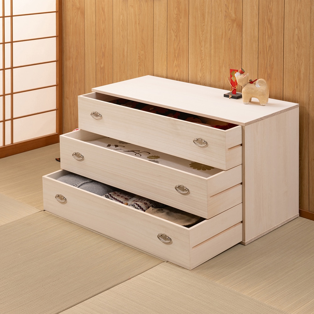 ●調湿機能に優れた桐材は収納物が傷みにくく、大切な物や衣服の収納に最適