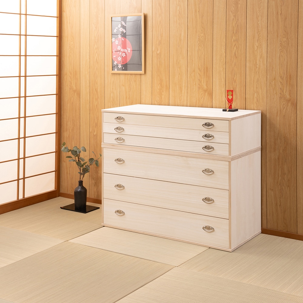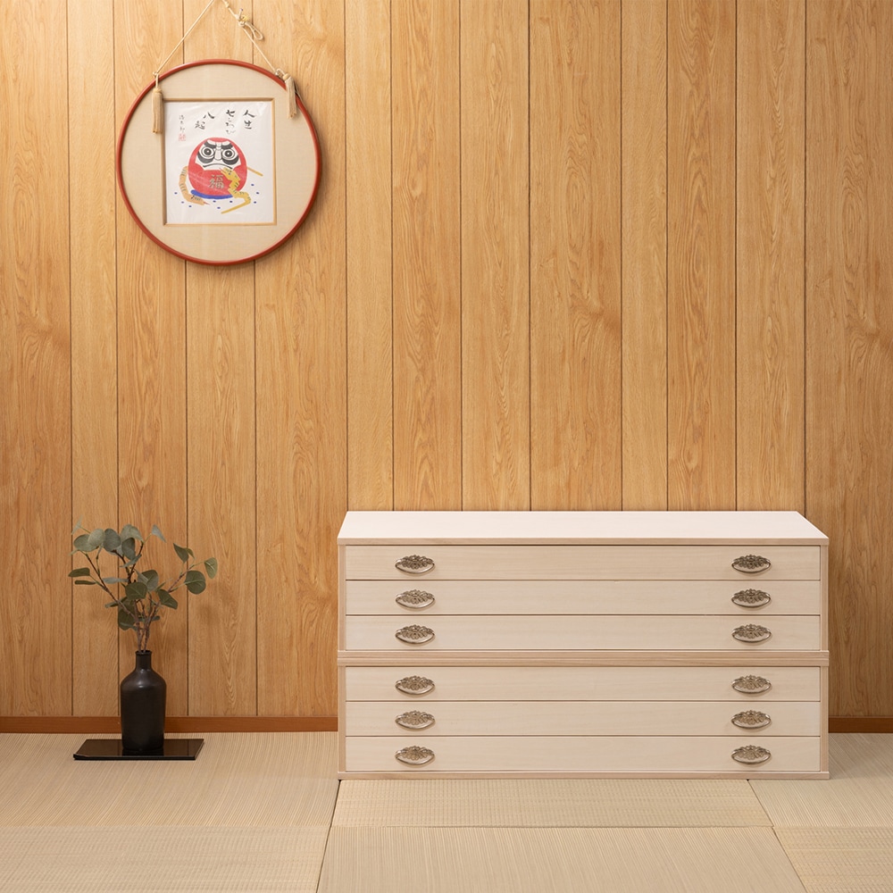 ●3段、4段、6段は収納物や収納量に応じて上置き兼用3段と組合わせる事ができるので着物や和装小物が増えた時の買い足しが可能