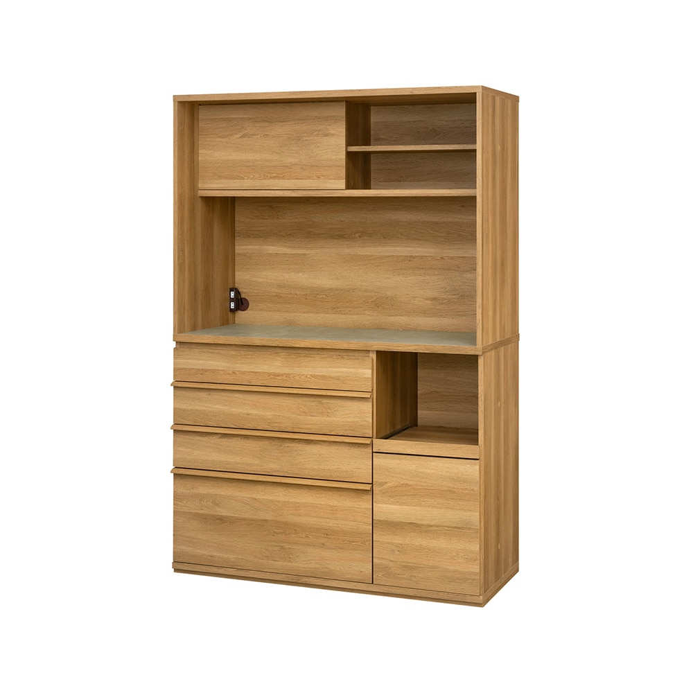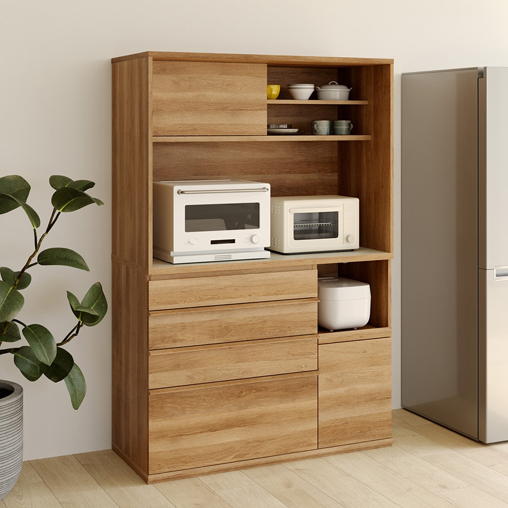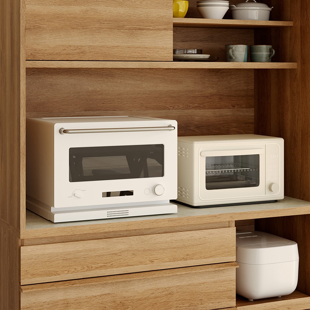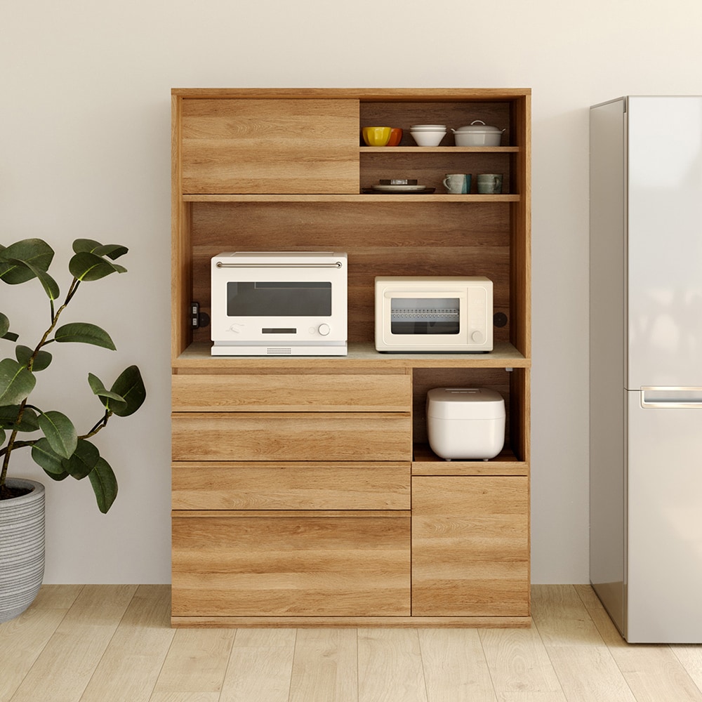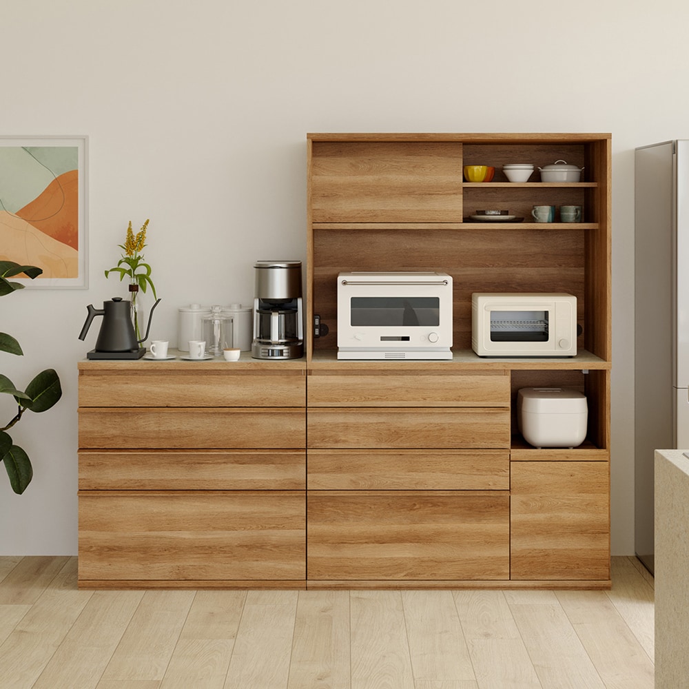 • 幅120cmの中天板には家電を並べて時短料理を楽しめます。/キッチンボード