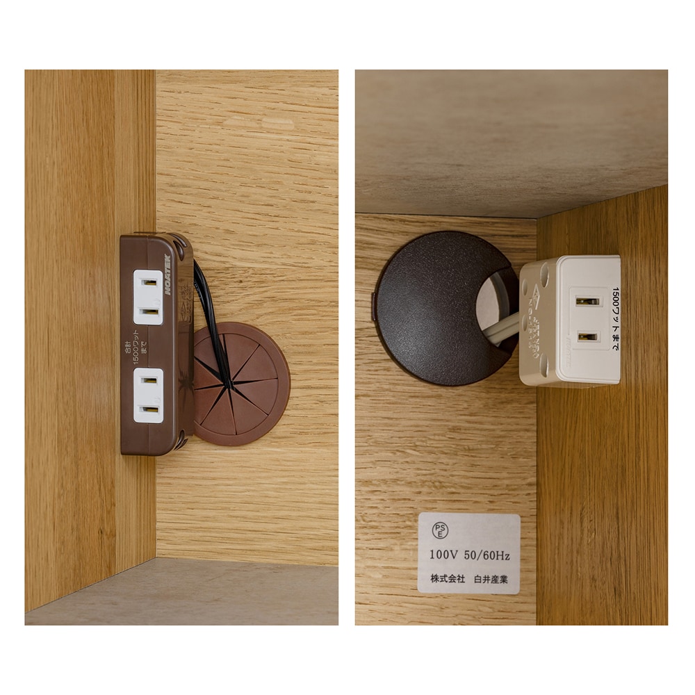 ●天板部にはコード落とし付きでコード類をすっきり整理。調理家電もスマートに配置できます