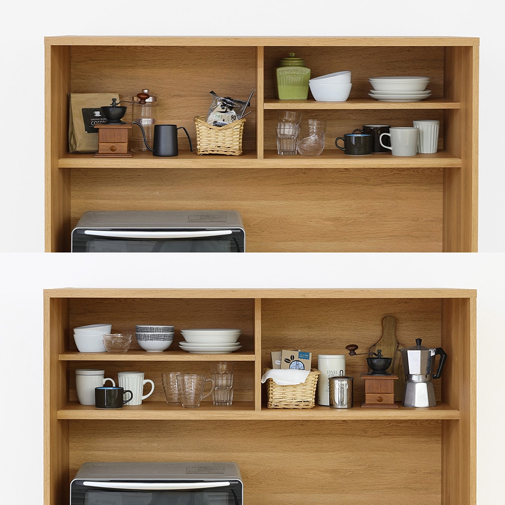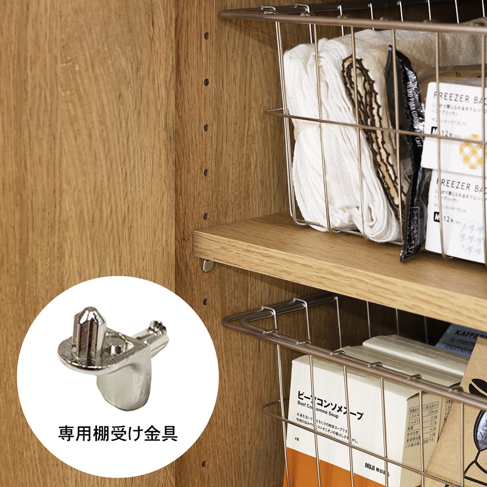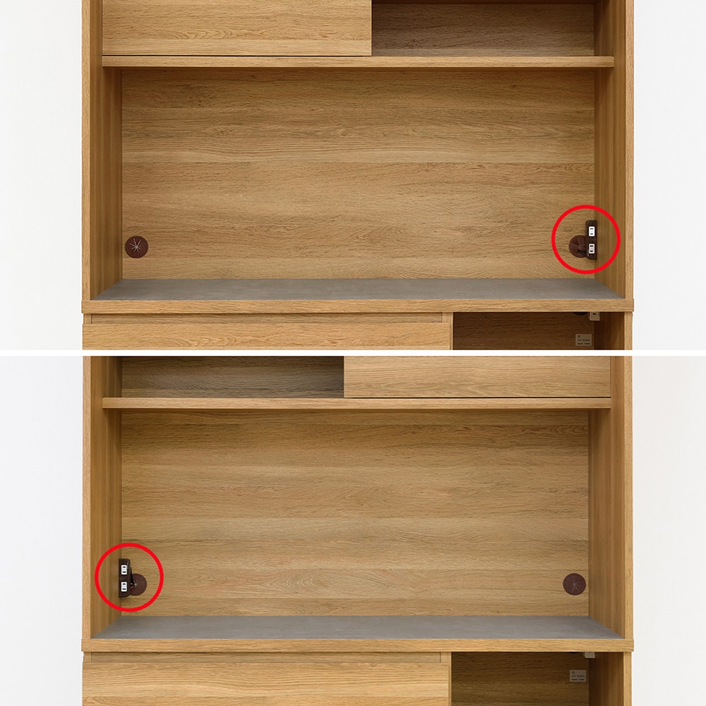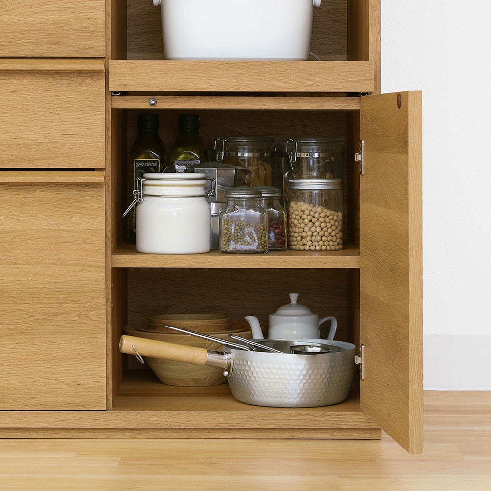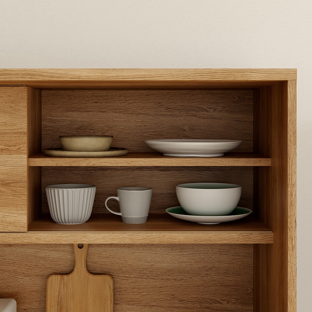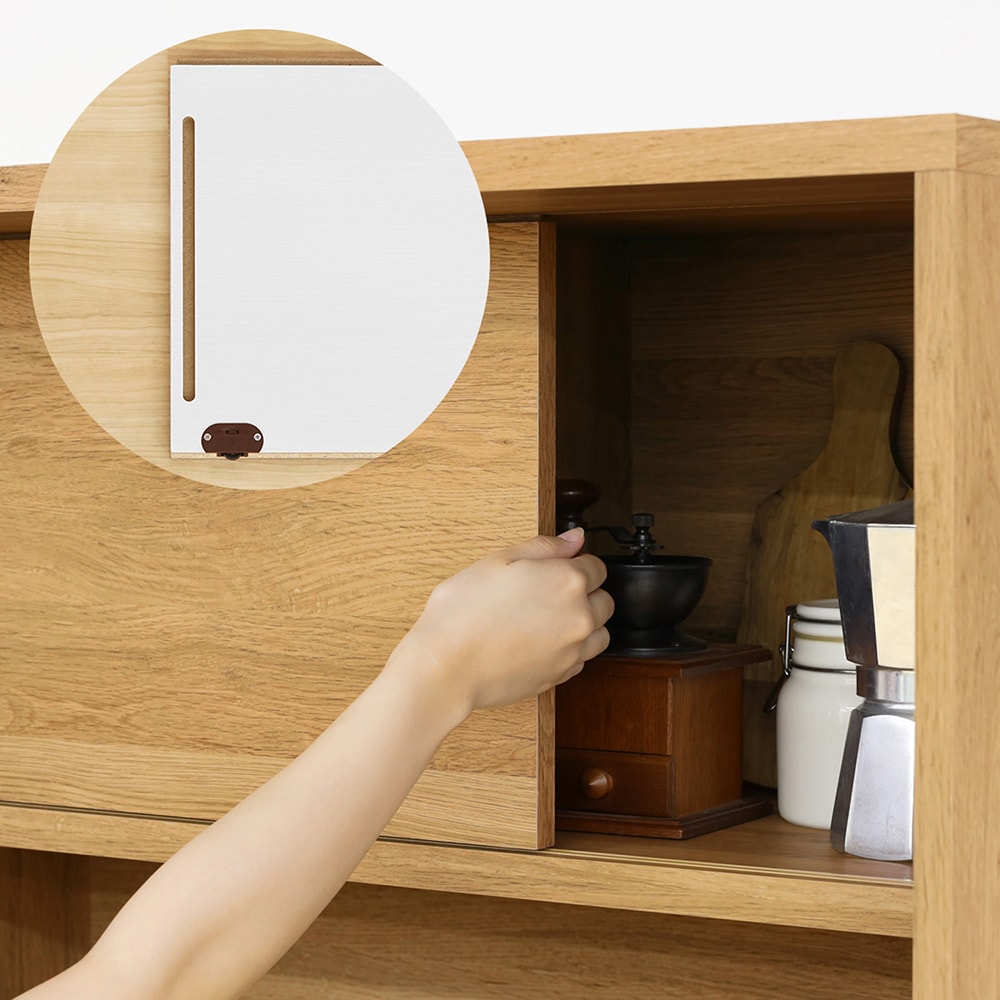 引き戸内の棚板は左右どちらにも取り付けできます。/キッチンボード