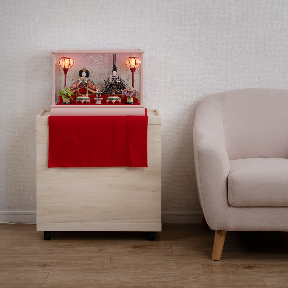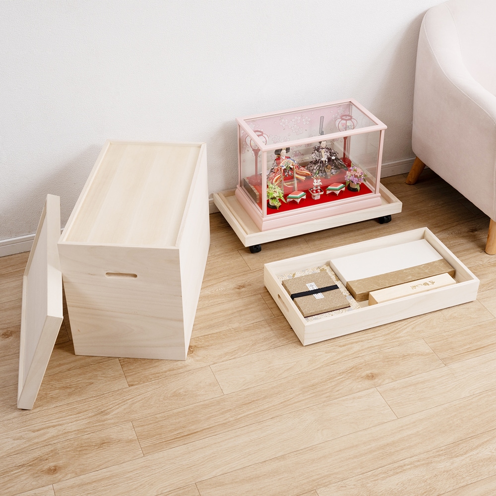 ケースのまま収納&飾れる総桐の雛人形収納ワゴン