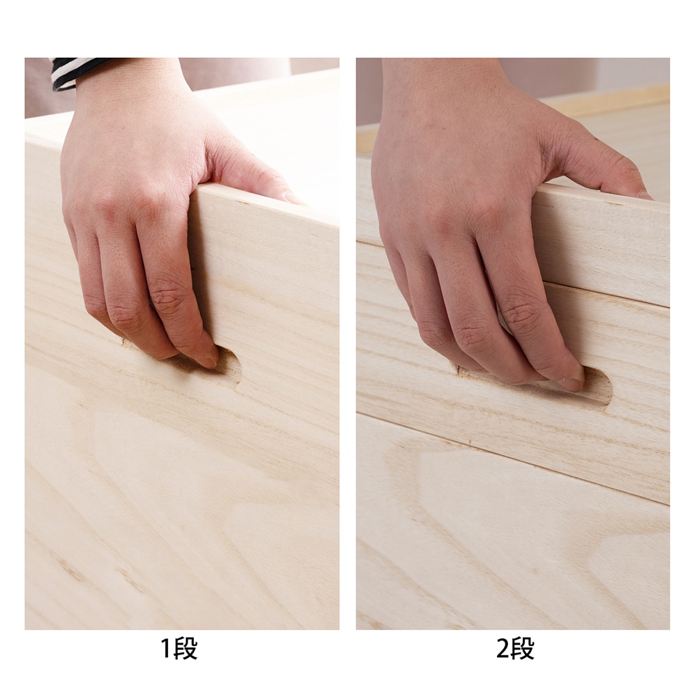 • 天然木ならではの、持ちやすいくり抜き取っ手