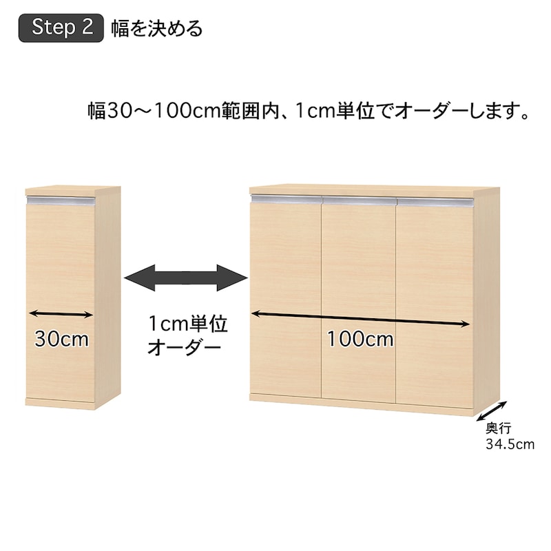 ●幅30cm~100cmまで1cm単位でオーダーできるシューズボックス