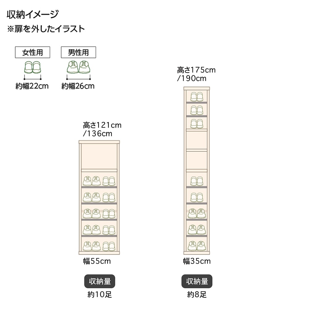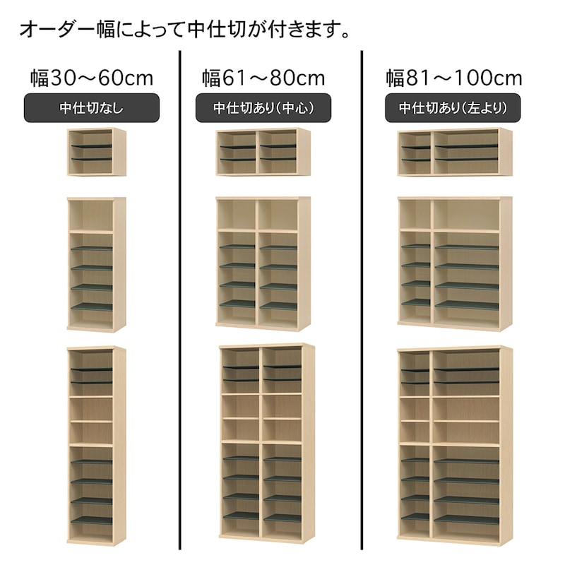 【幅1cmピッチオーダー】高さが選べるオープンスペース付きシューズボックス <脚なし/脚付き><中開きタイプ>[日本製]
