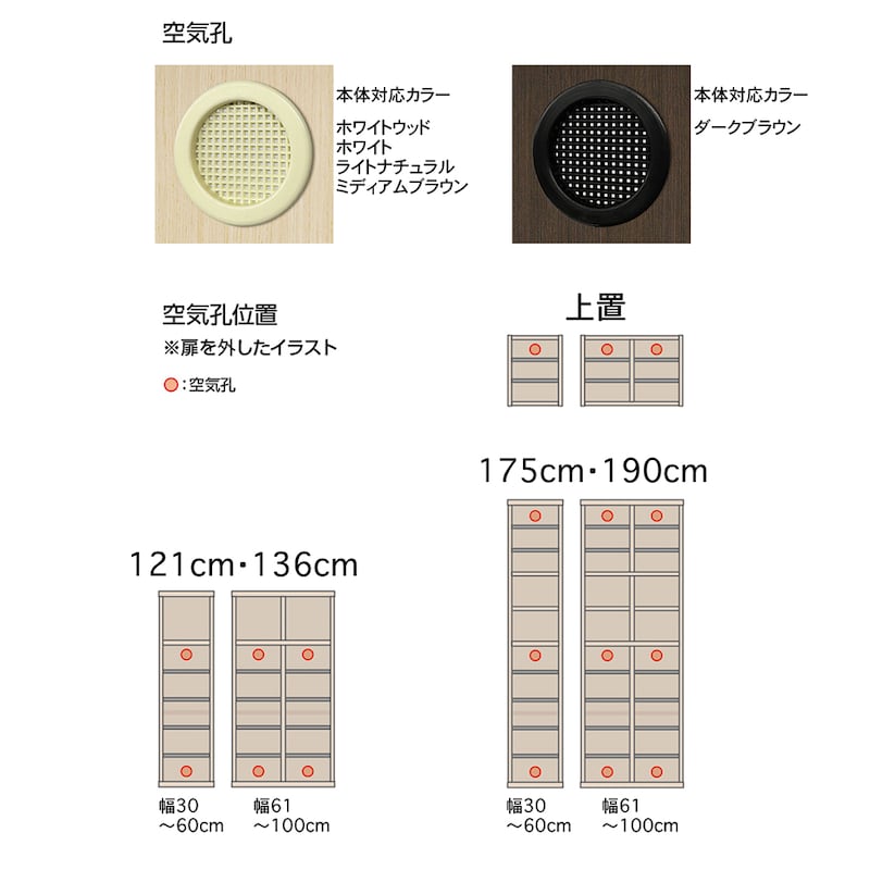 ●本体背面の上下には空気孔を設置し、通気性を確保