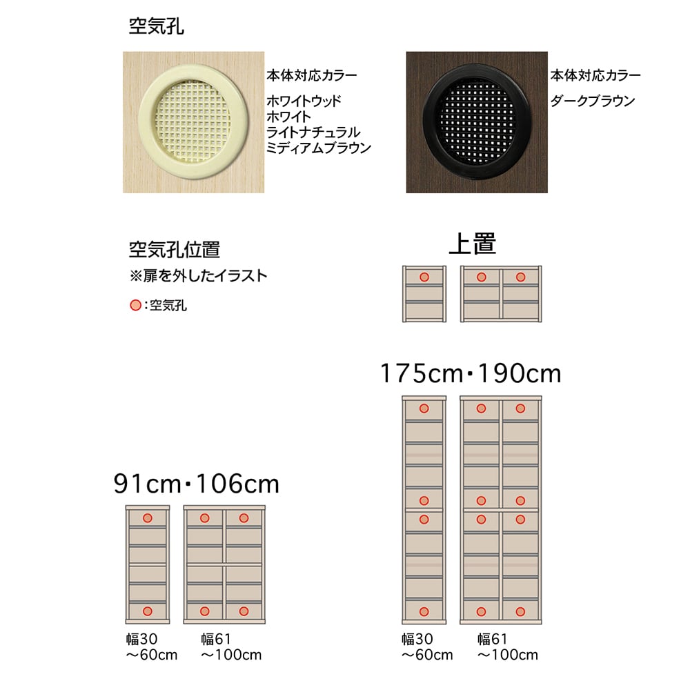 ●本体背面の上下には空気孔を設置し、通気性を確保