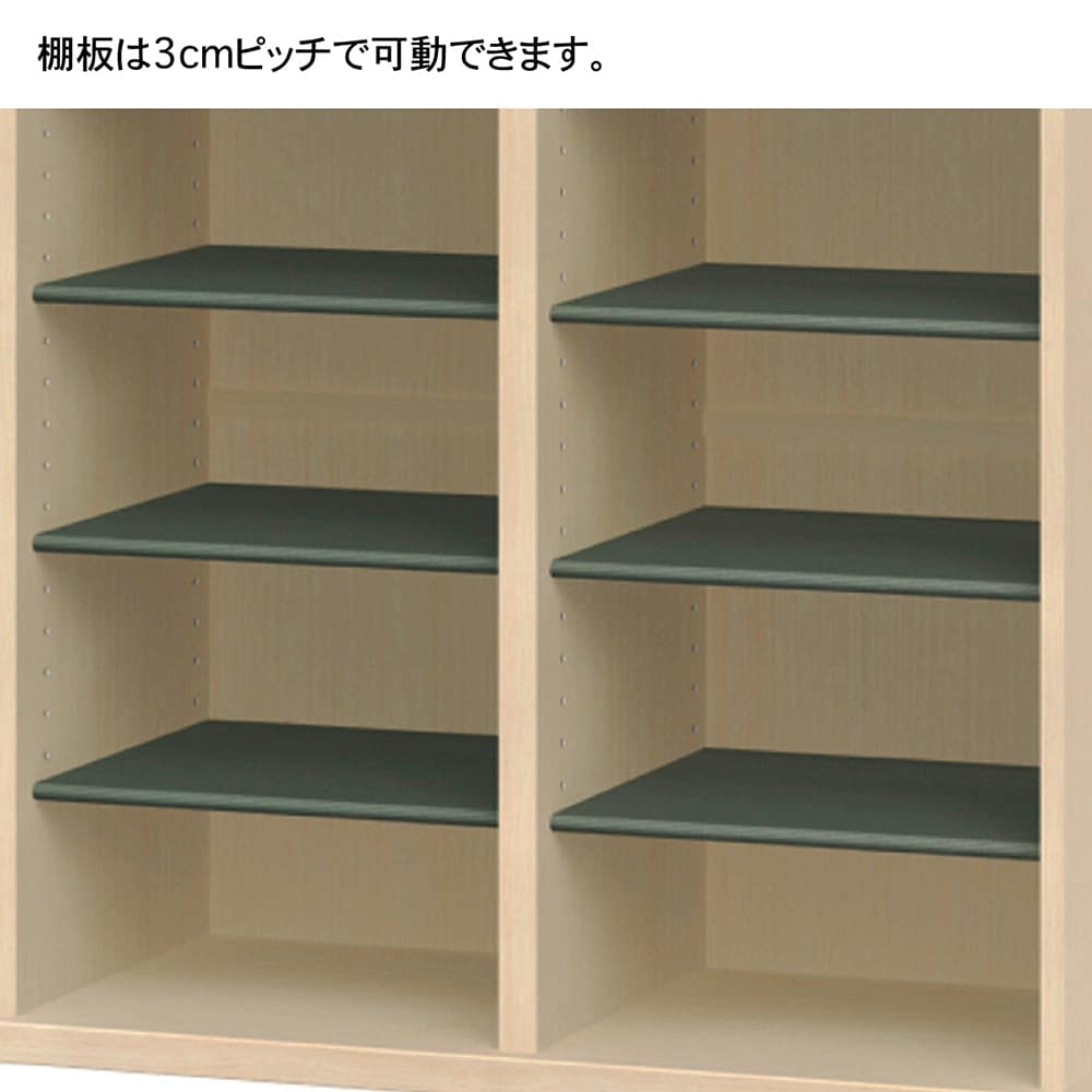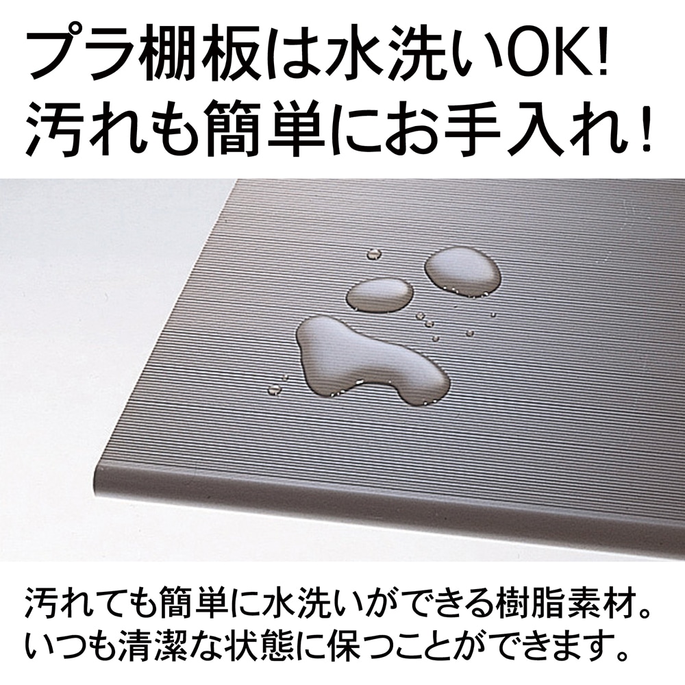 ●3cmピッチで可動できる棚板は水洗いができる樹脂製で、いつでも清潔にお使いいただけます