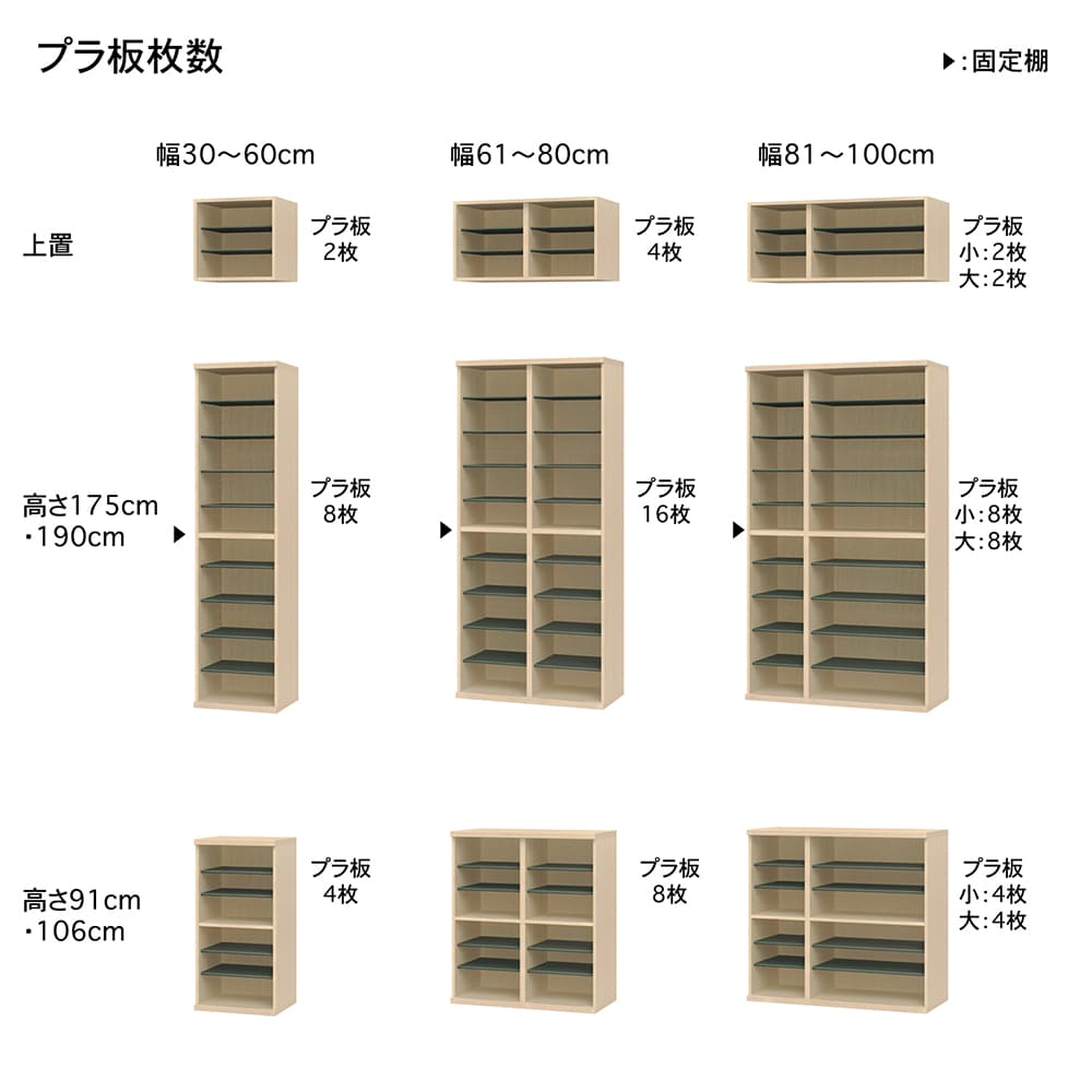 幅81~100cm(高さ91・106cm:小4・大4枚、高さ175・190cm:小8・大8枚、高さ217.5・232.5cm:小10・大10枚