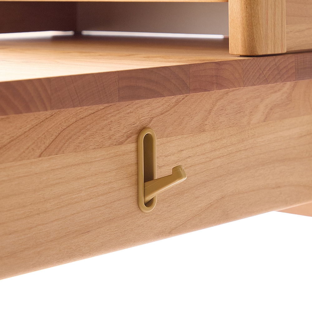 ●デスクサイドにはフック付きでランドセルや手提げバッグが掛けられます