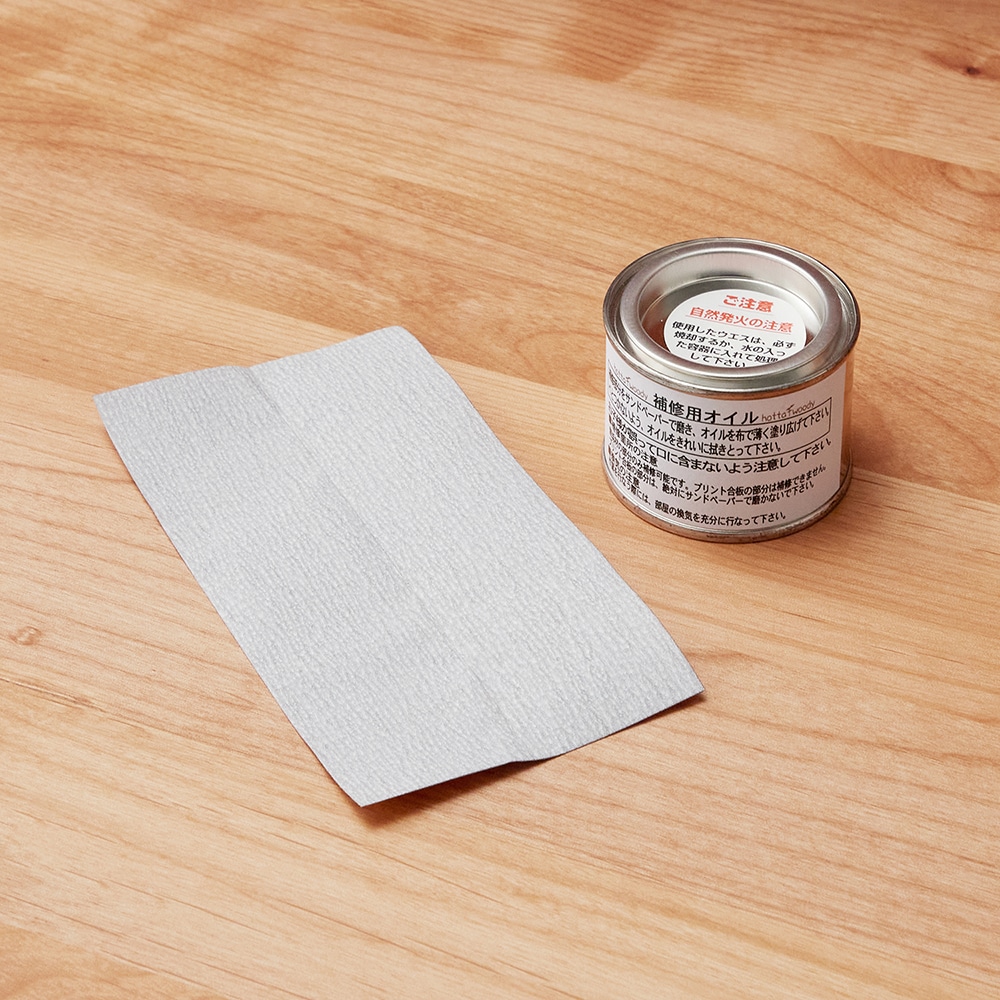 • デスクには木部メンテナンス用オイル・サンドぺーパーが付属します。