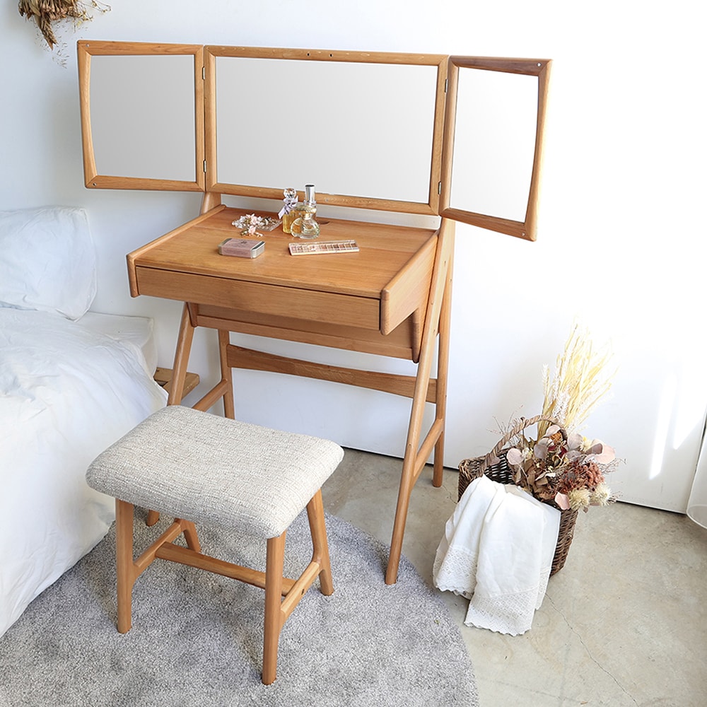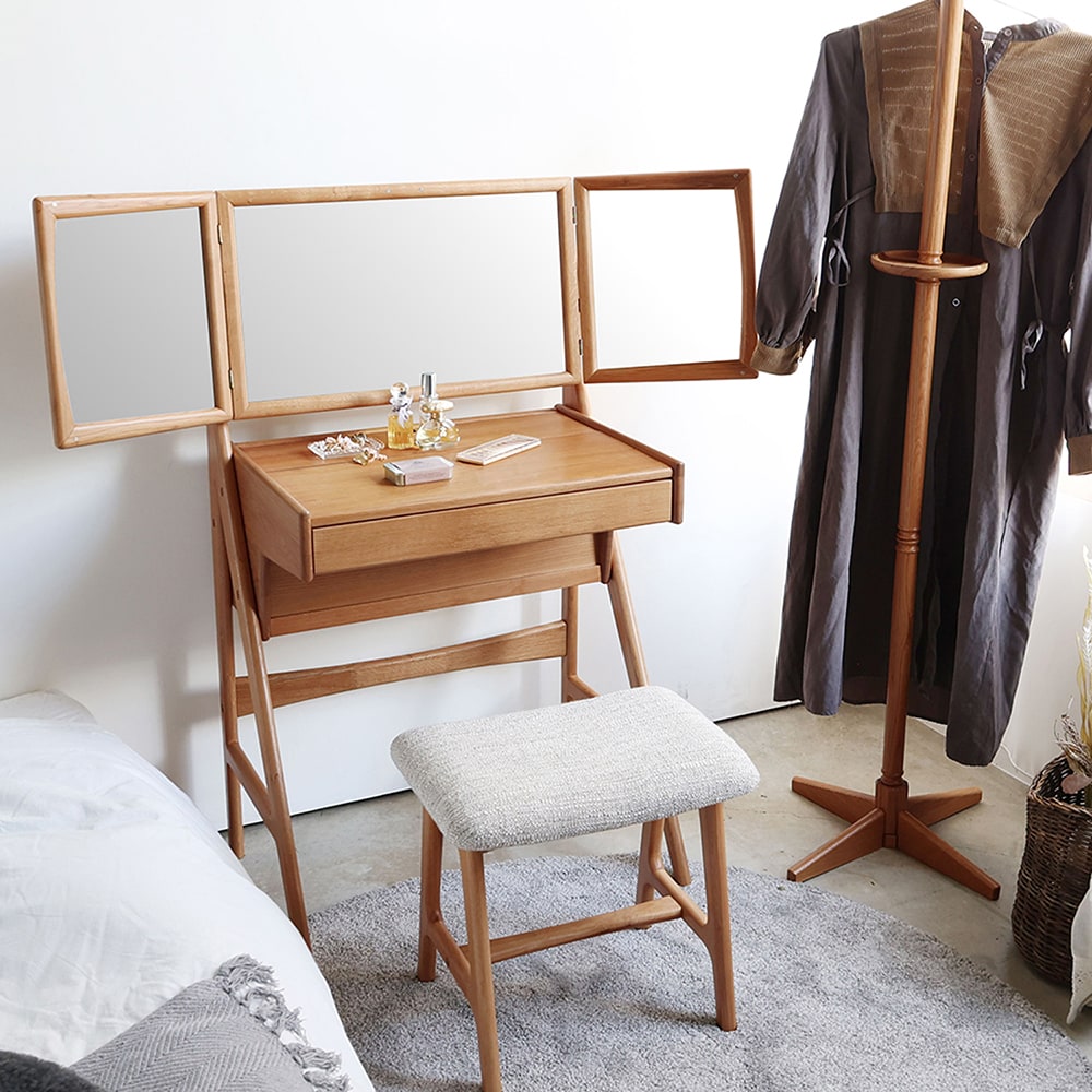 ●北欧ヴィンテージデザインを現代の暮らしに合わせてリデザインした、上質感あふれるドレッサー&スツールセット