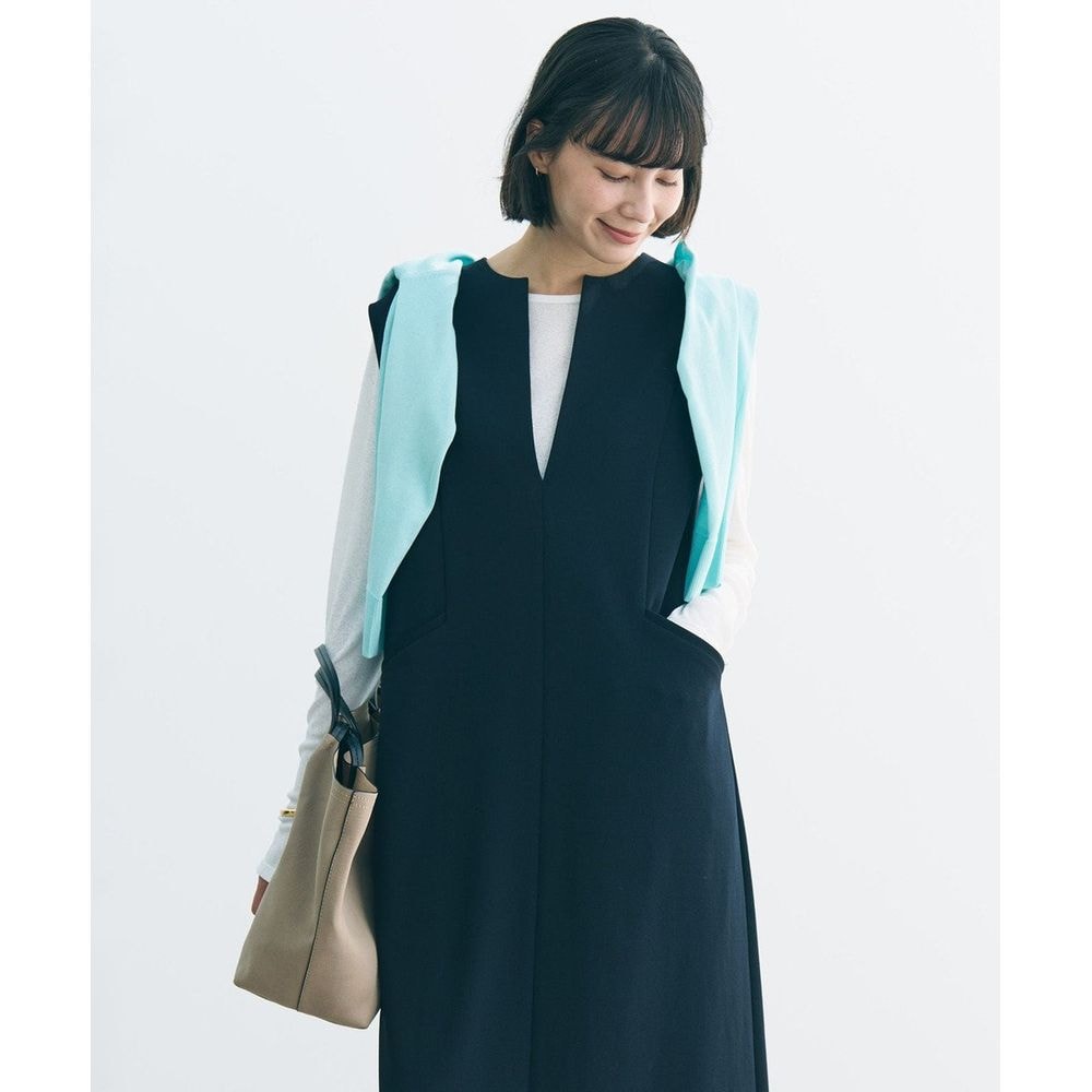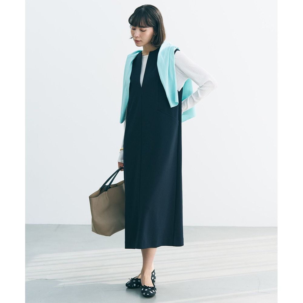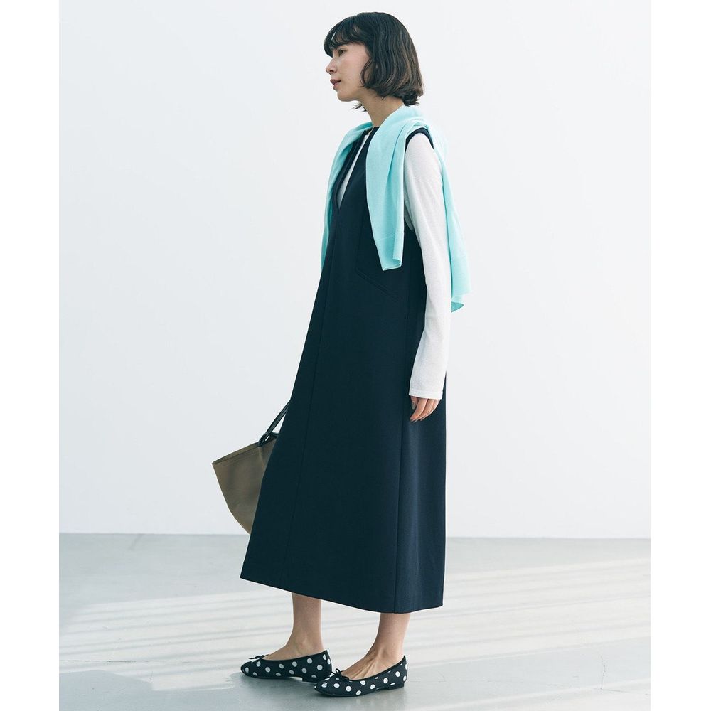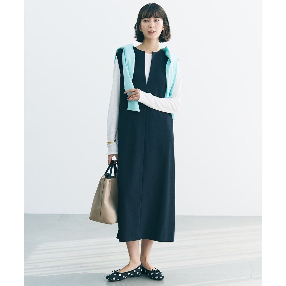 すっきりとしたIラインシルエットに、深めのキーネックが程よい抜け感を演出してくれるジャンスカ。