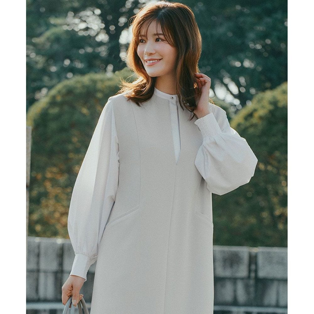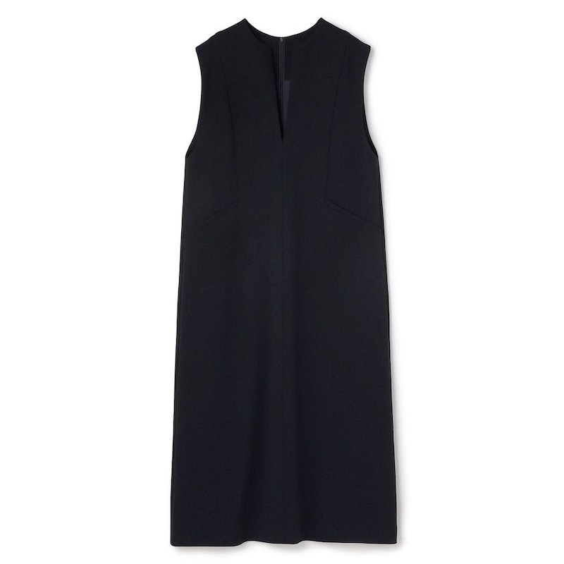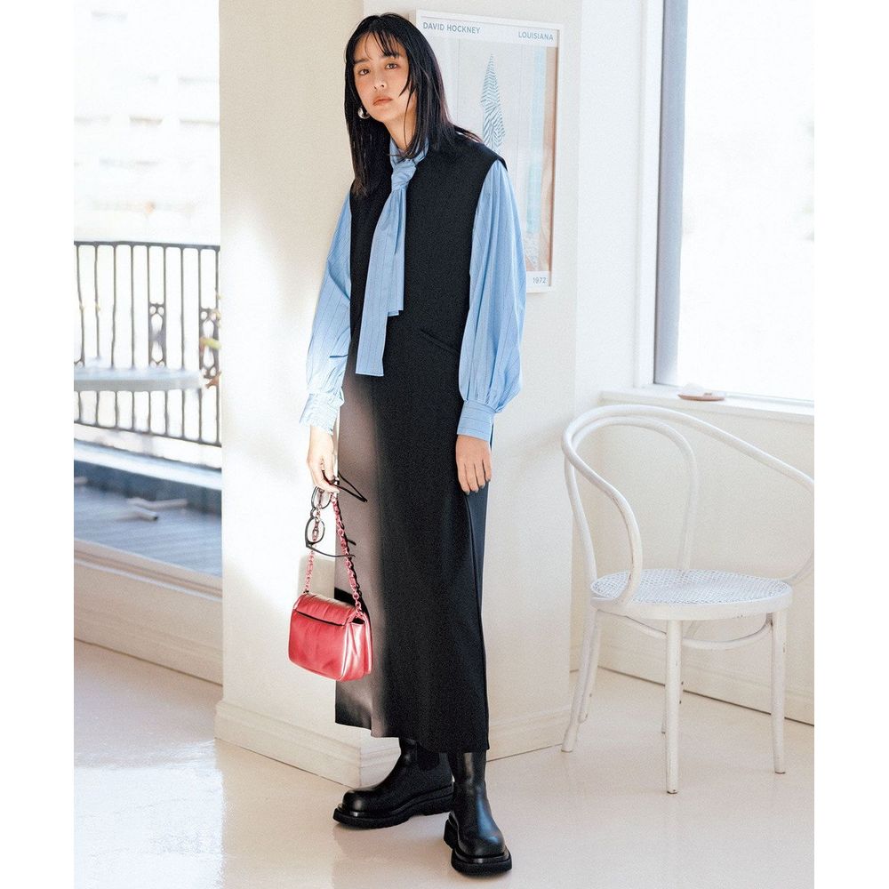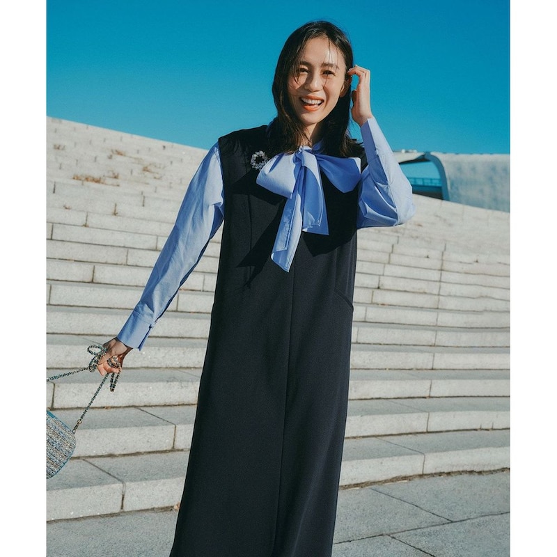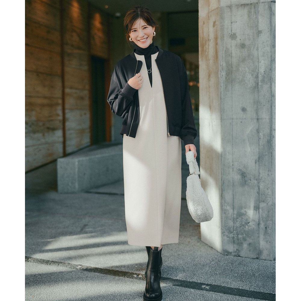 すっきりとしたIラインシルエットに、深めのキーネックが程よい抜け感を演出してくれるジャンスカ。