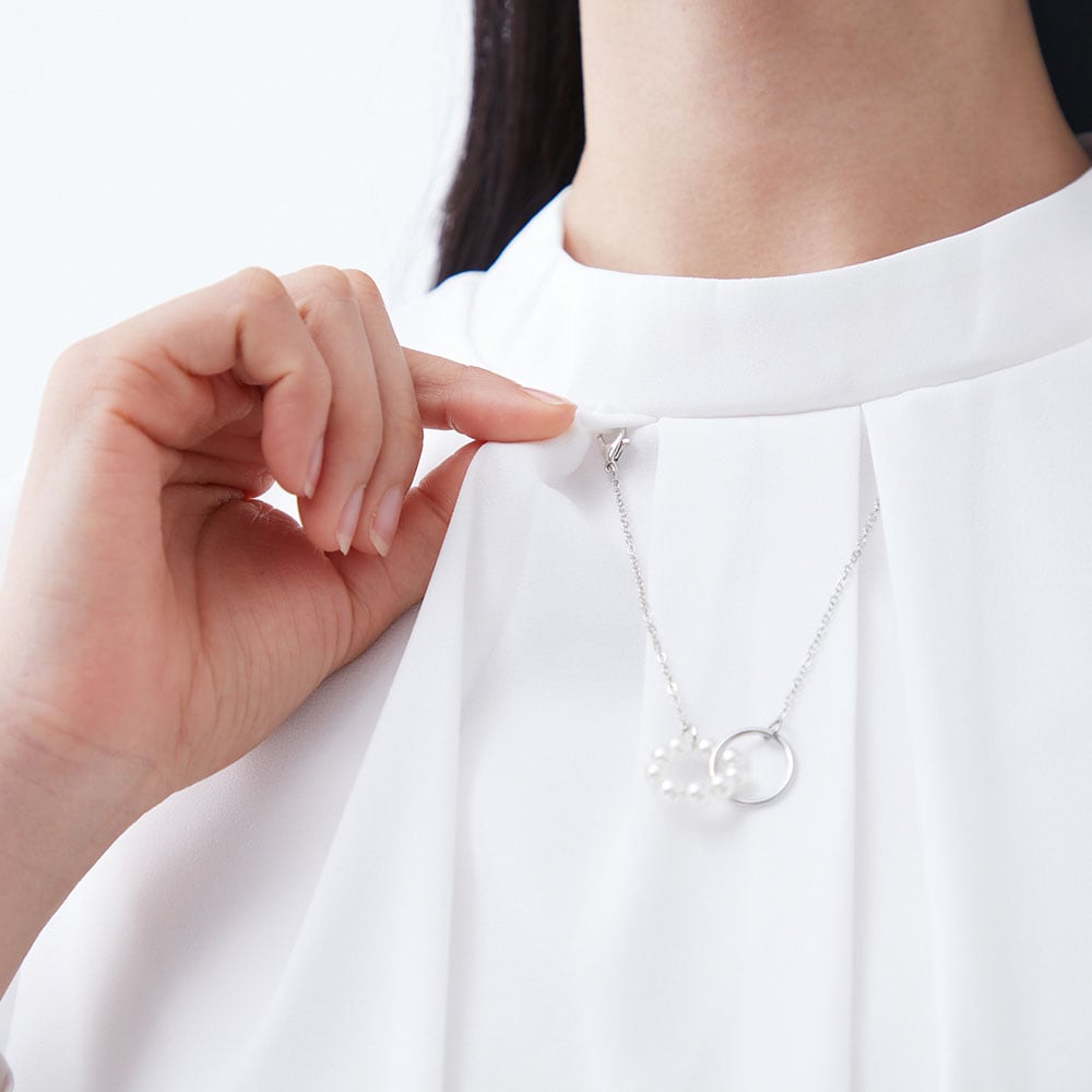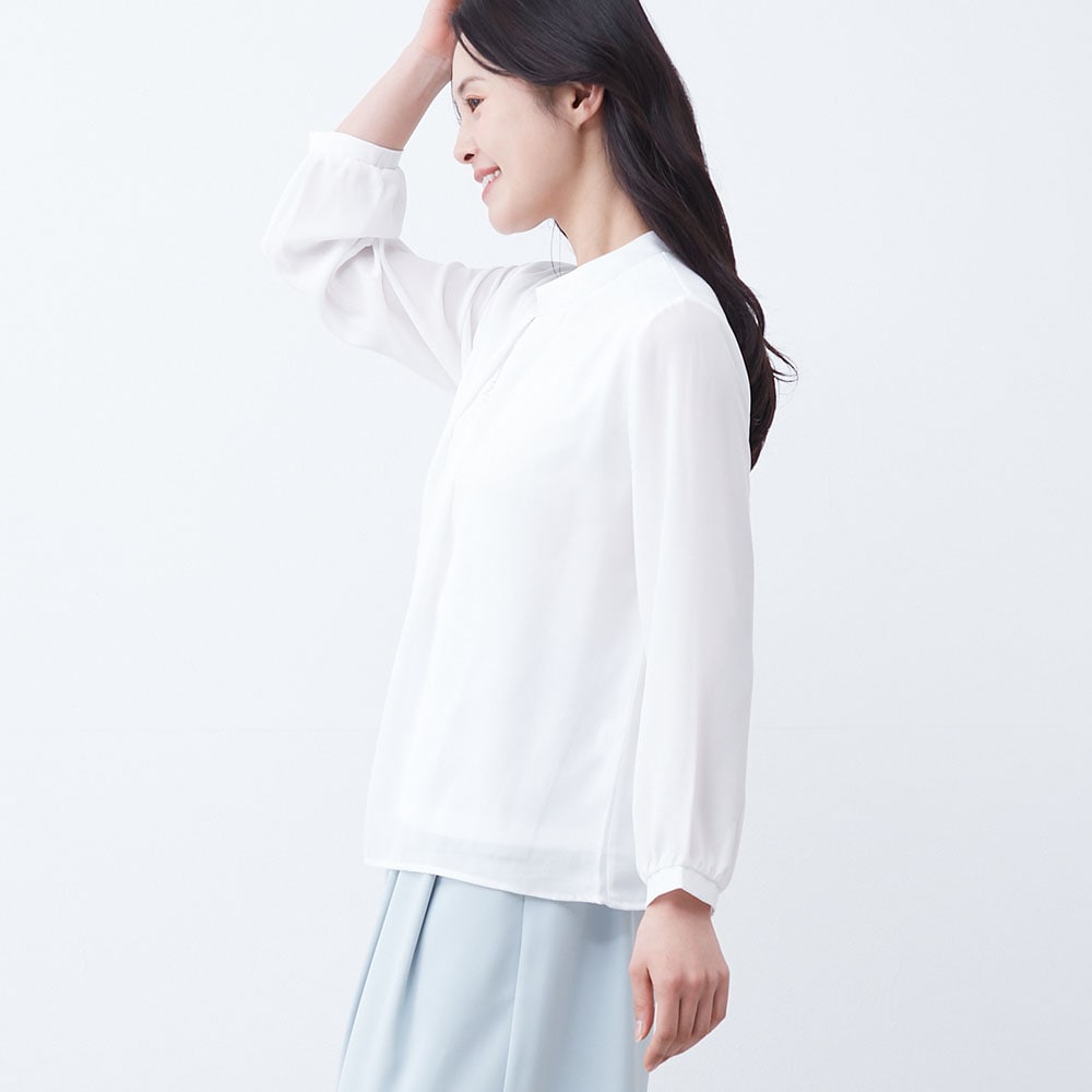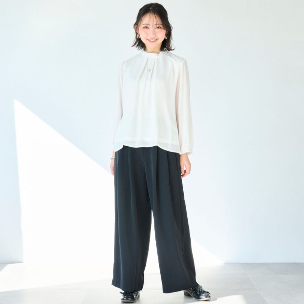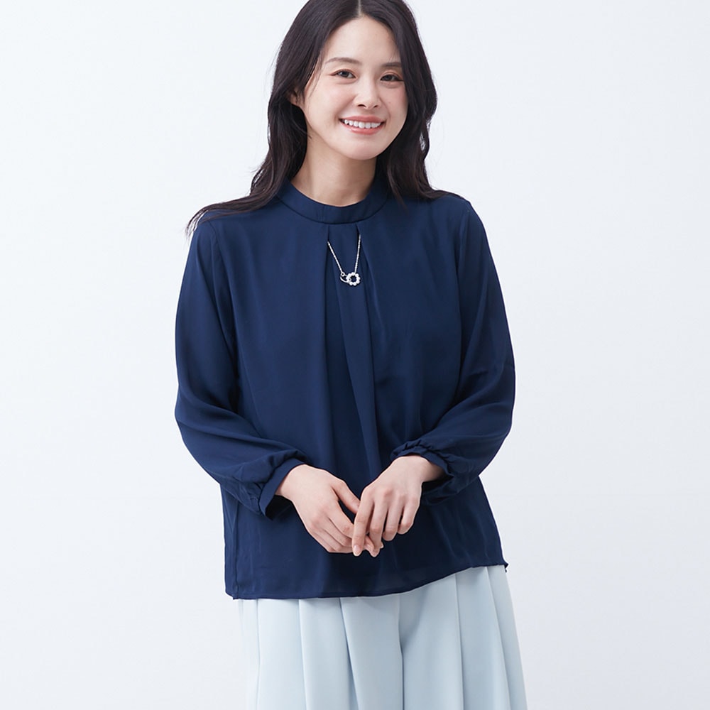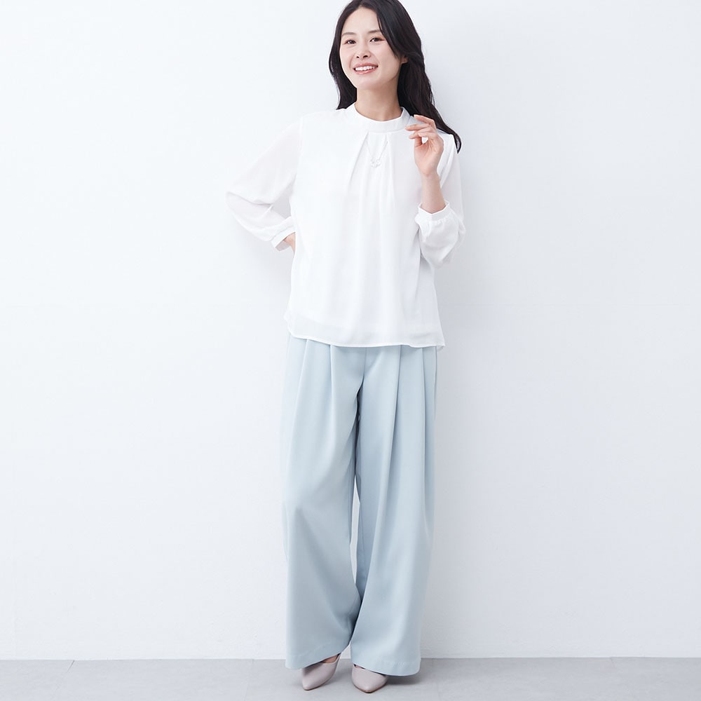 アクセ付きの華やかなプチハイネックブラウス