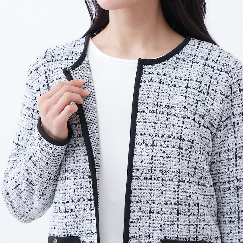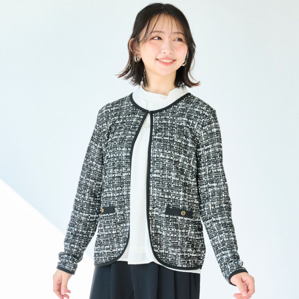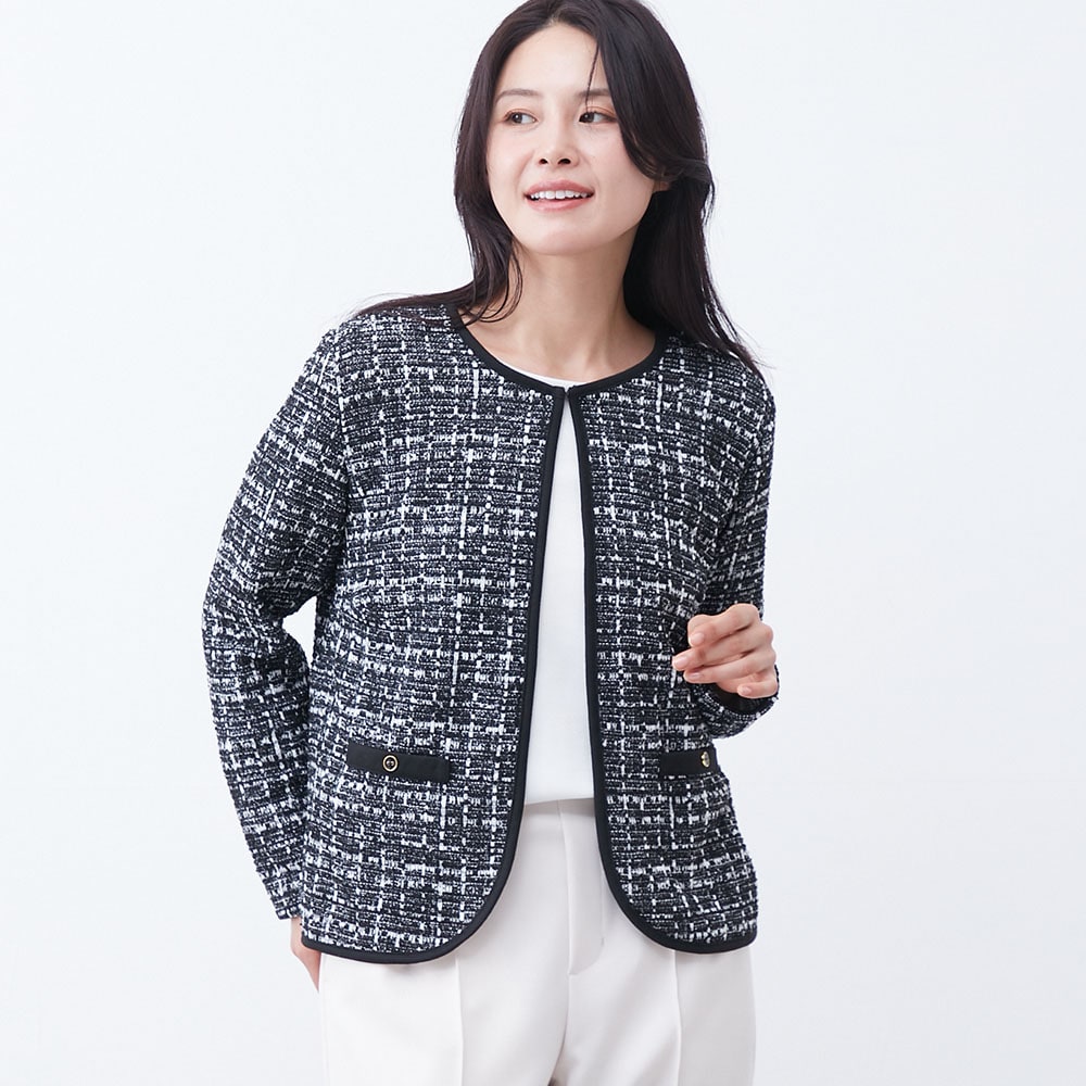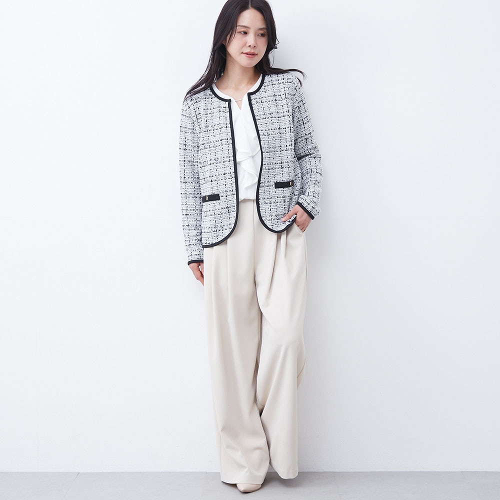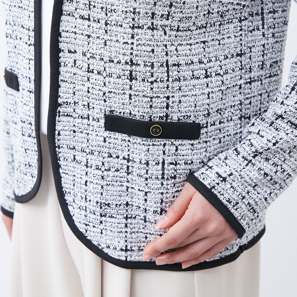 パイピングデザインが目を引くツイードジャケット