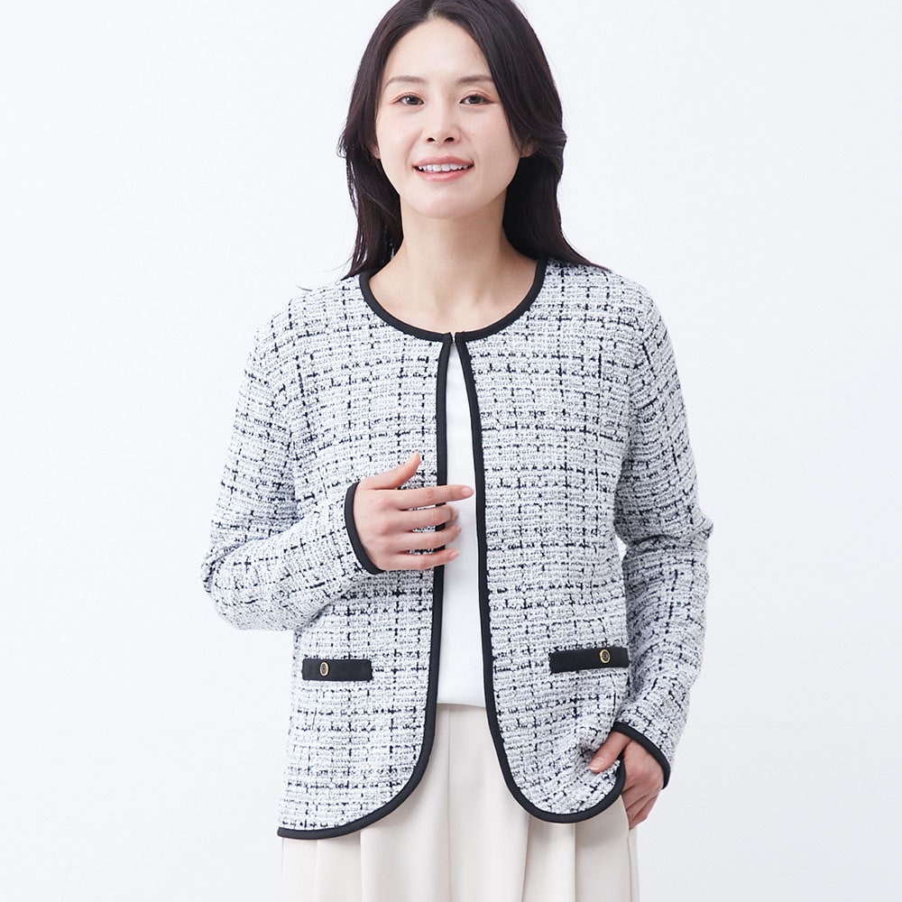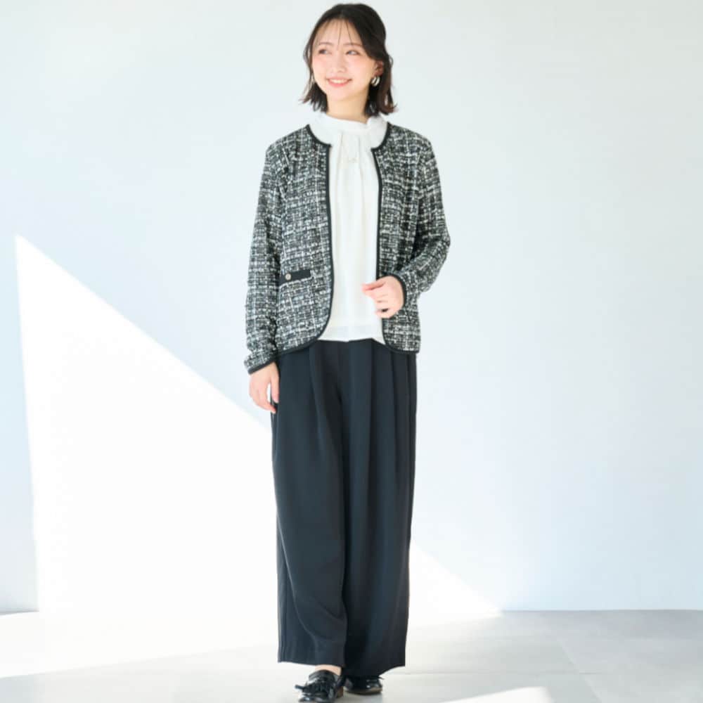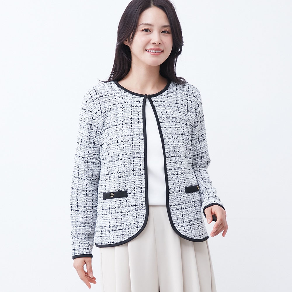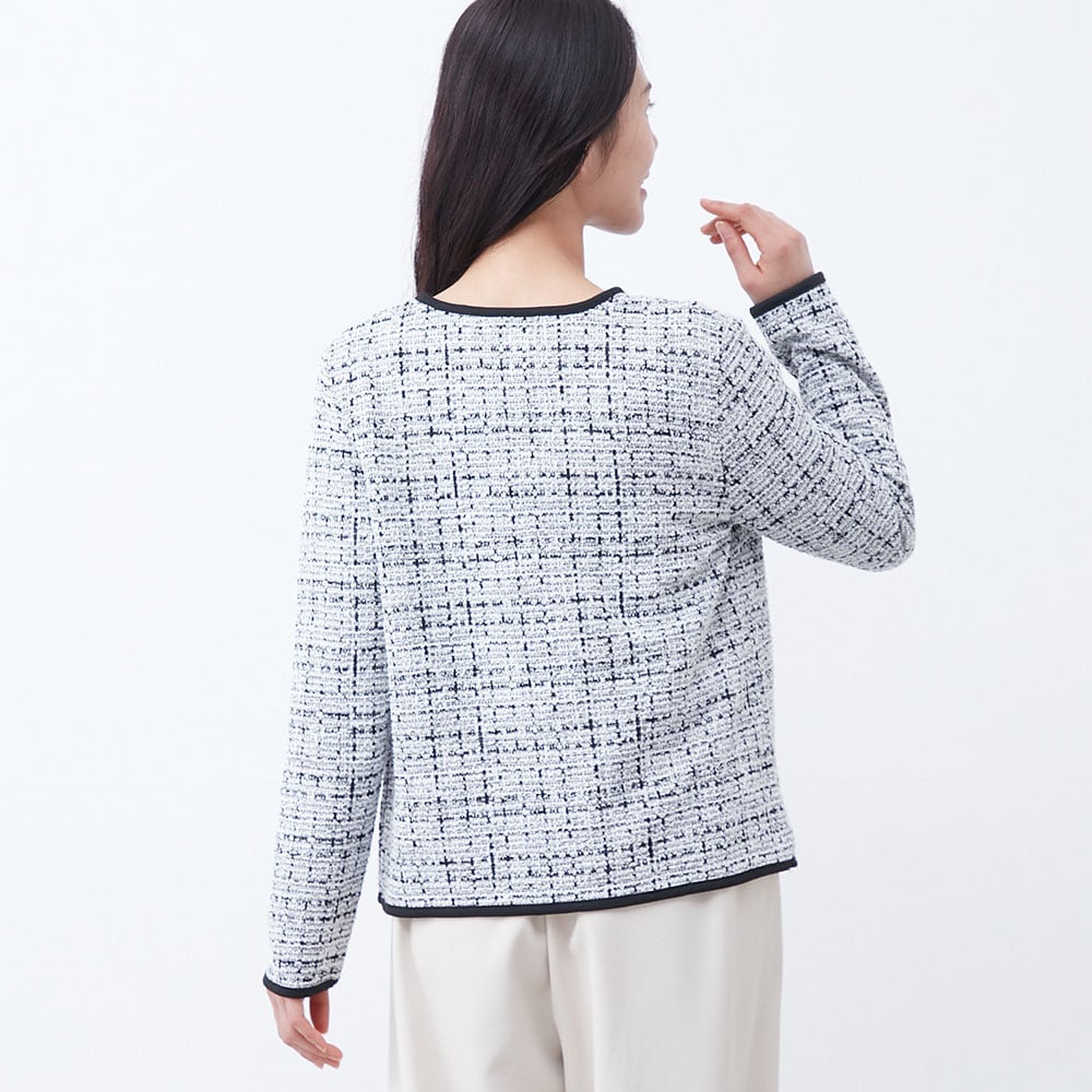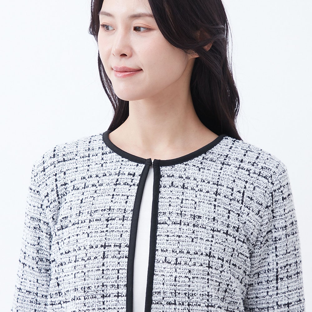 パイピングデザインが目を引くツイードジャケット