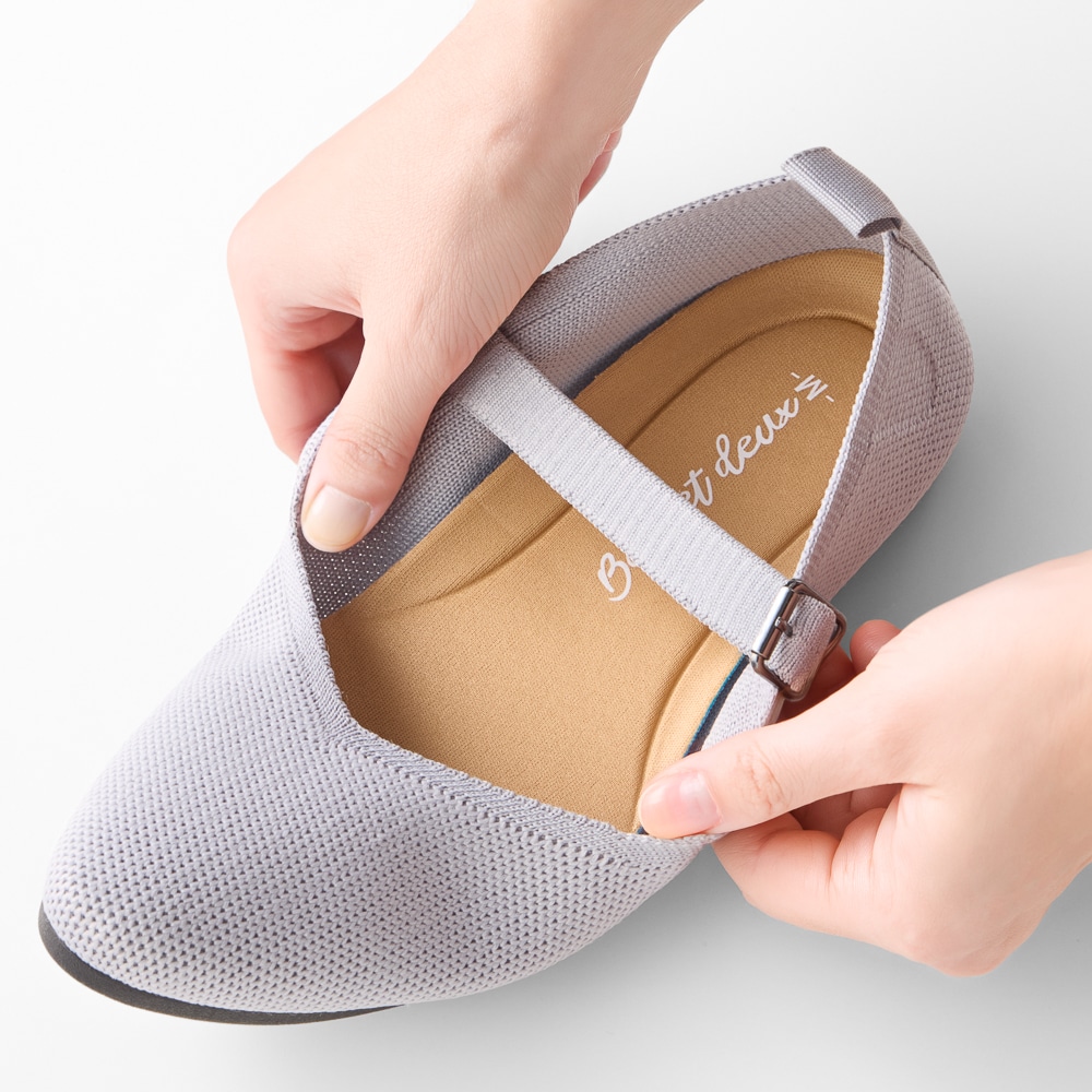 ・伸縮性のあるストラップ付きで脱げにくさと歩行をサポート