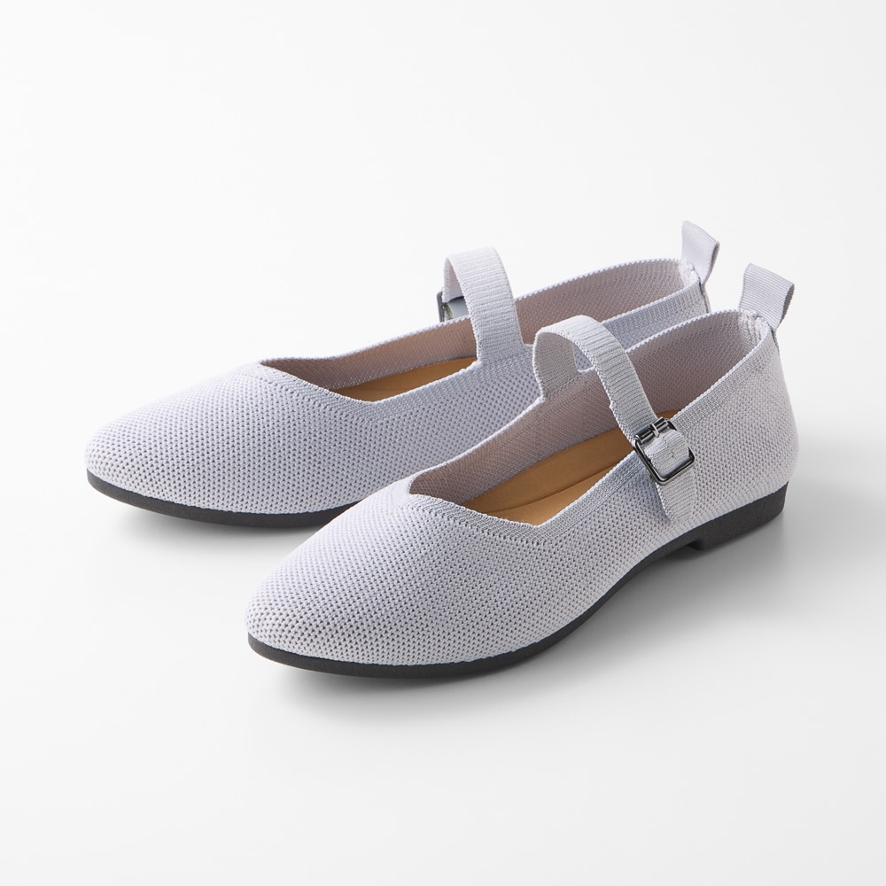 素足ではいてもやわらかな履き心地の、メッシュ素材のストラップシューズ