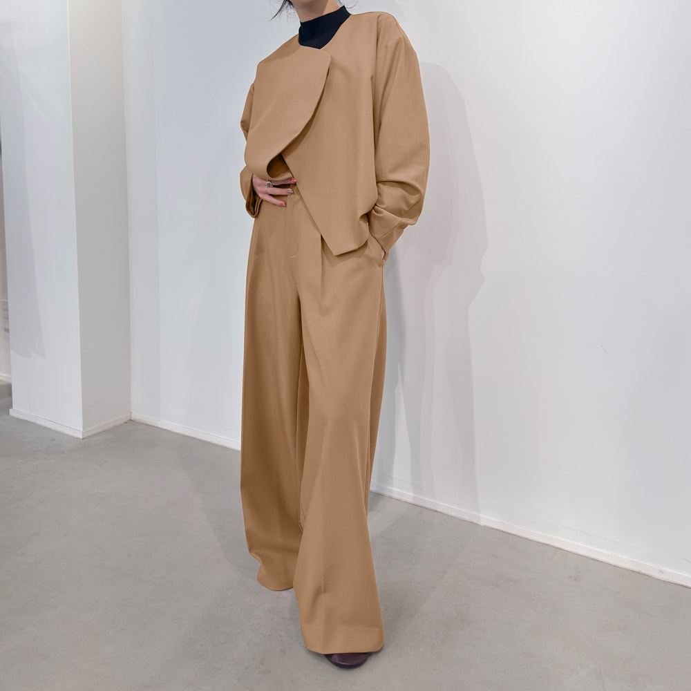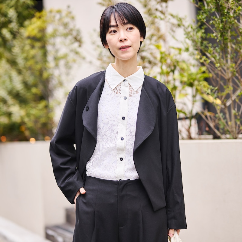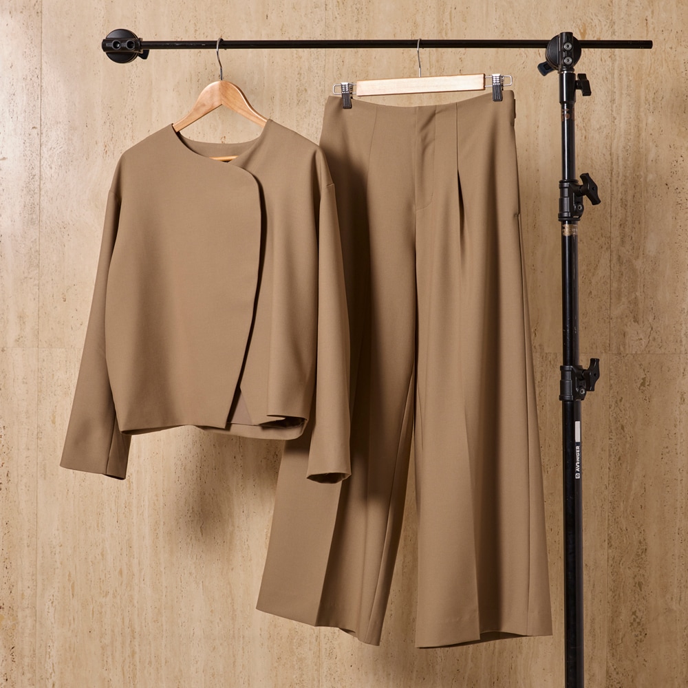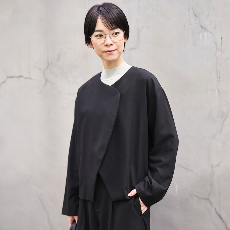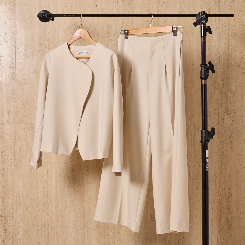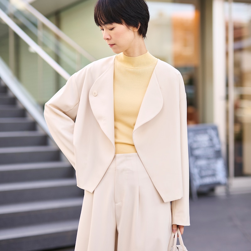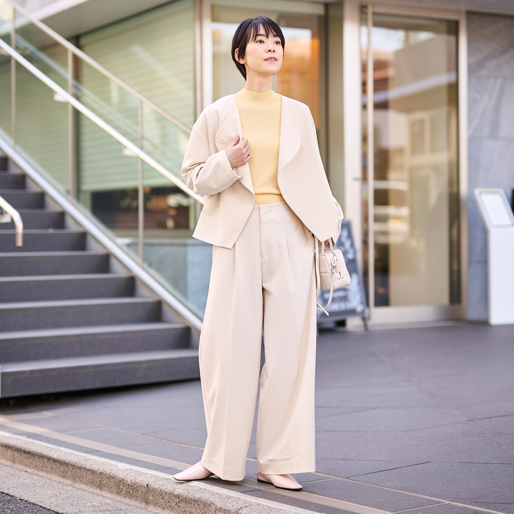 スーツは流行が見えやすいものでもありますが、こちらはモード感があり新鮮味があって、かえって長い期間おしゃれに着れそうです。