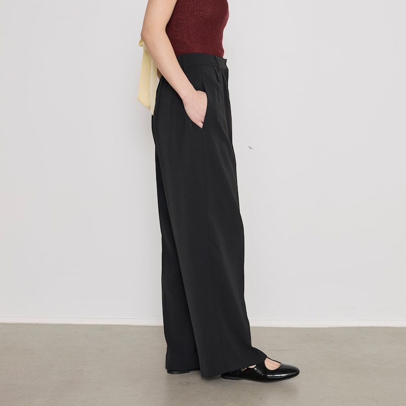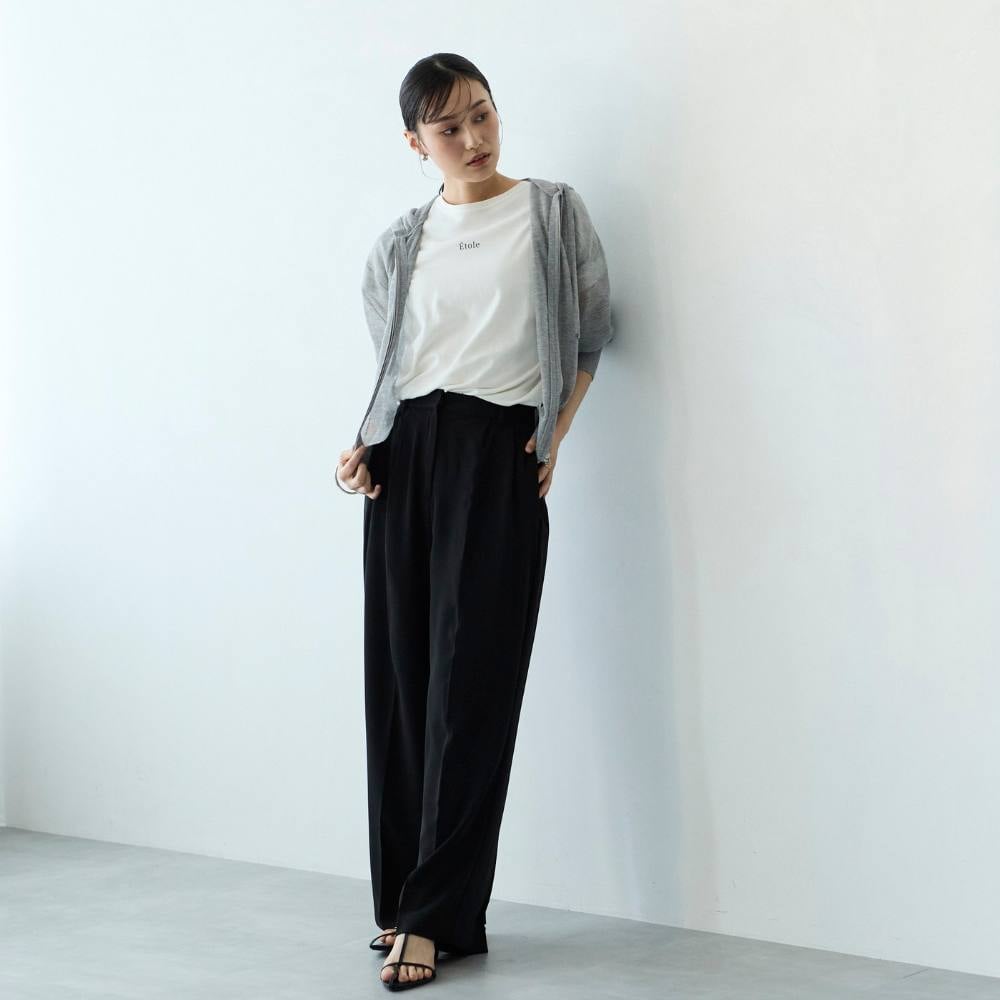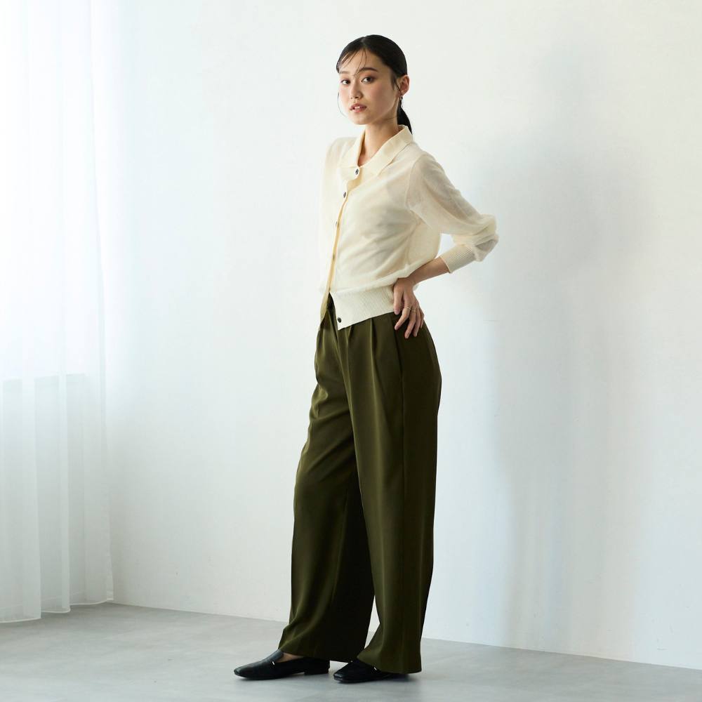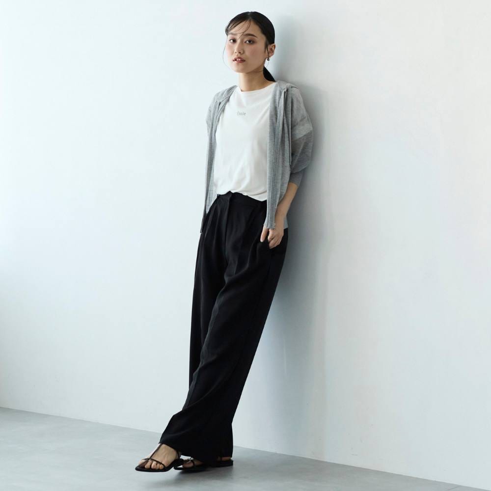 ・タック入りのワイドレッグシルエットで、リラックス感がありながらも上品な印象。
