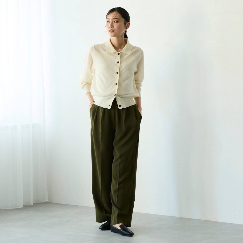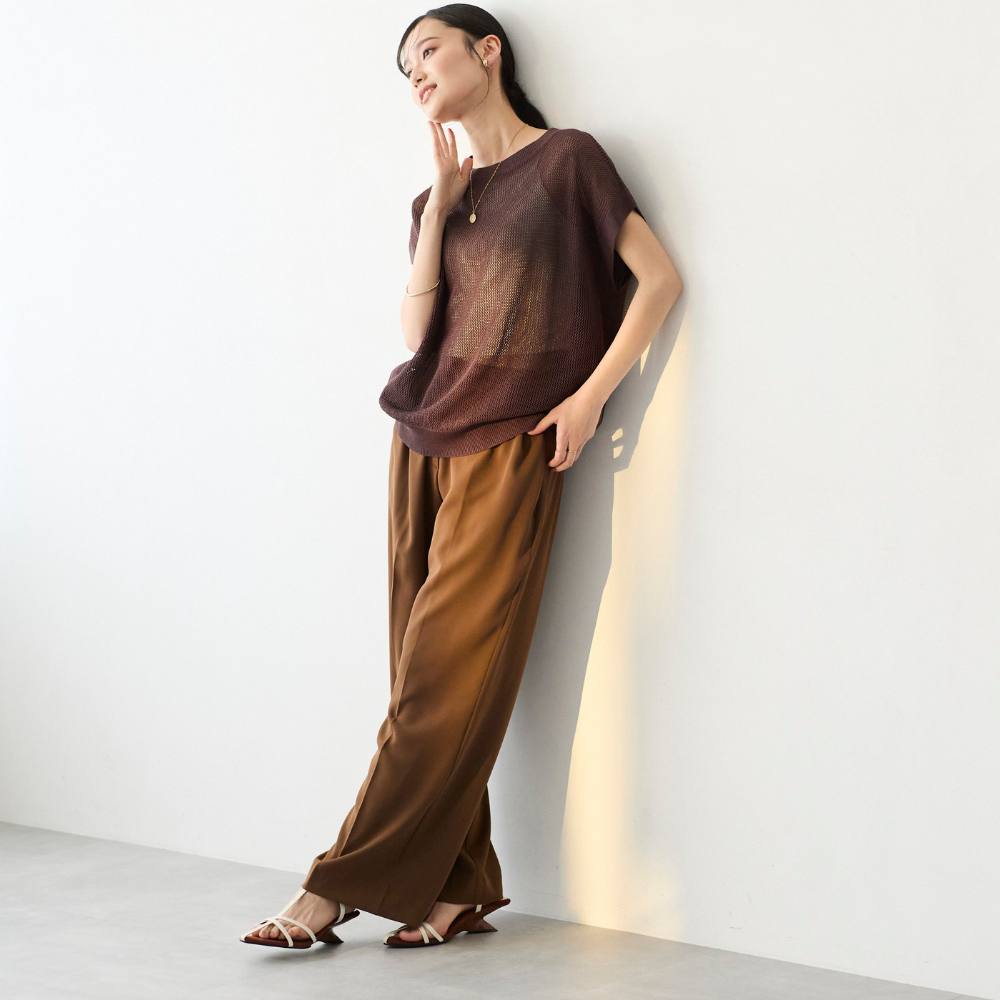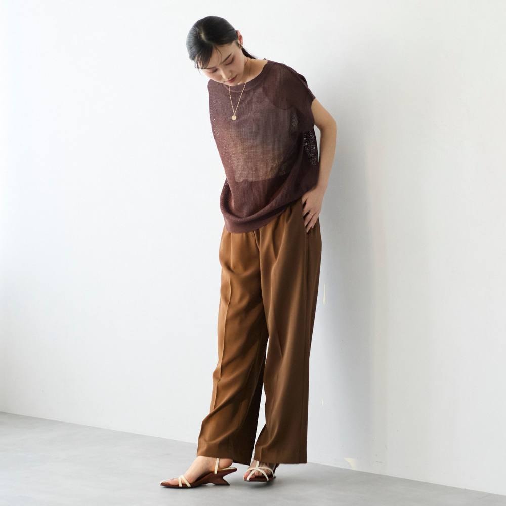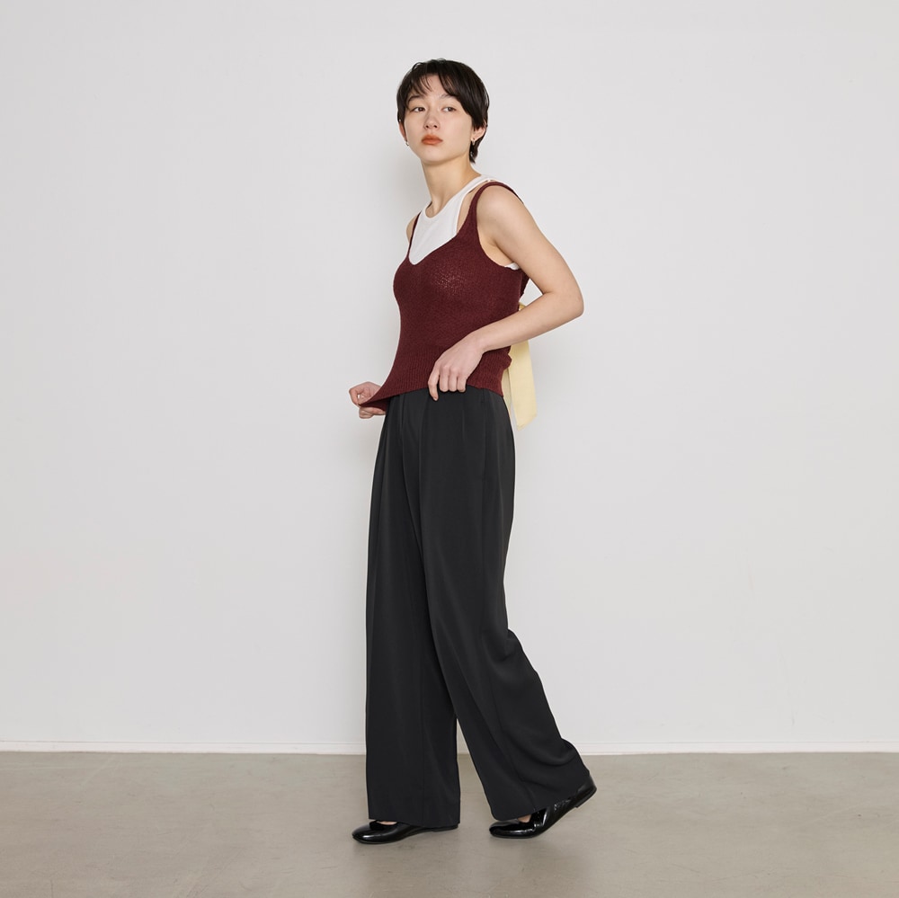 ・タック入りのワイドレッグシルエットで、リラックス感がありながらも上品な印象。