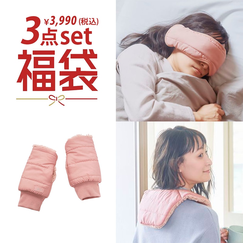 ・冬の冷えやすい“あたためポイント”をまとめてケア。ふんわりボアを内側に使用したやさしい肌ざわりで、手首・首肩・目元を包み込みます。