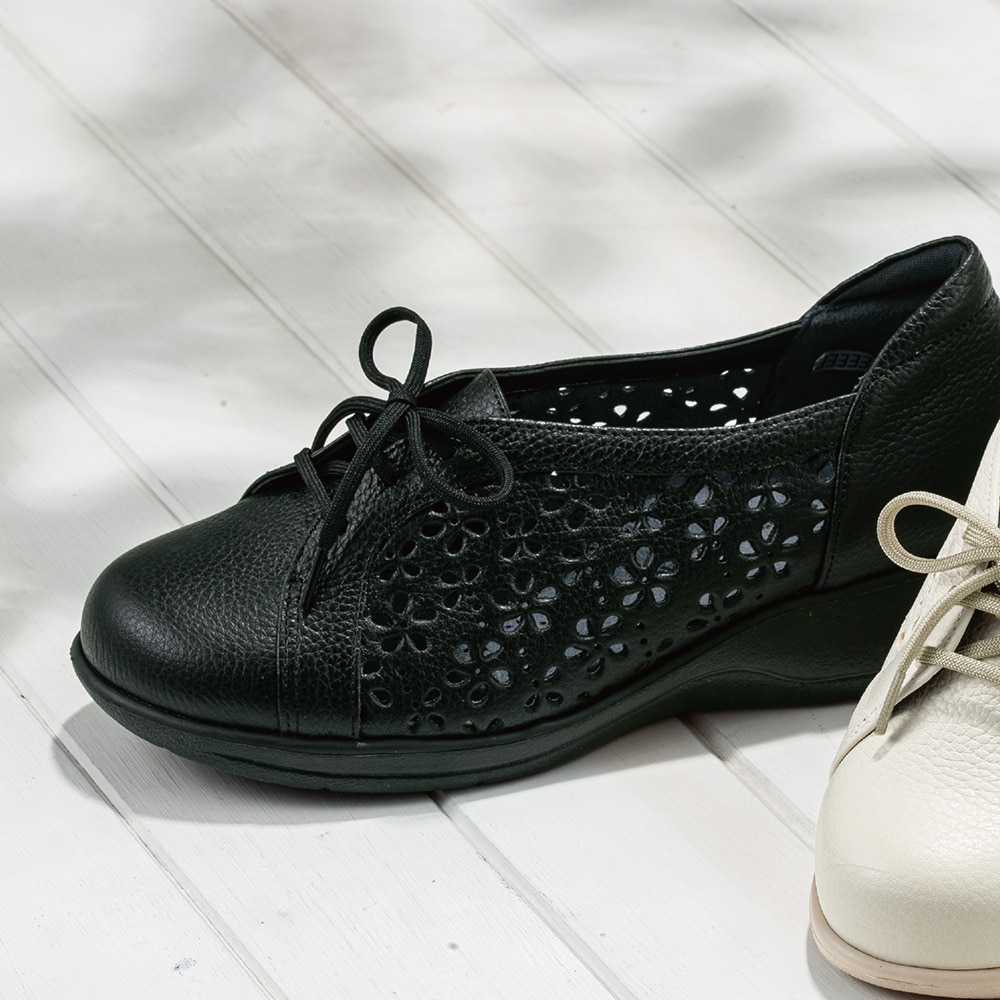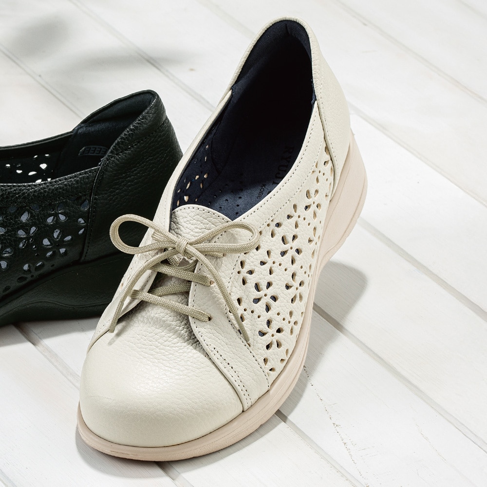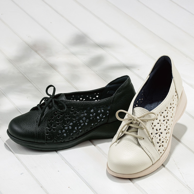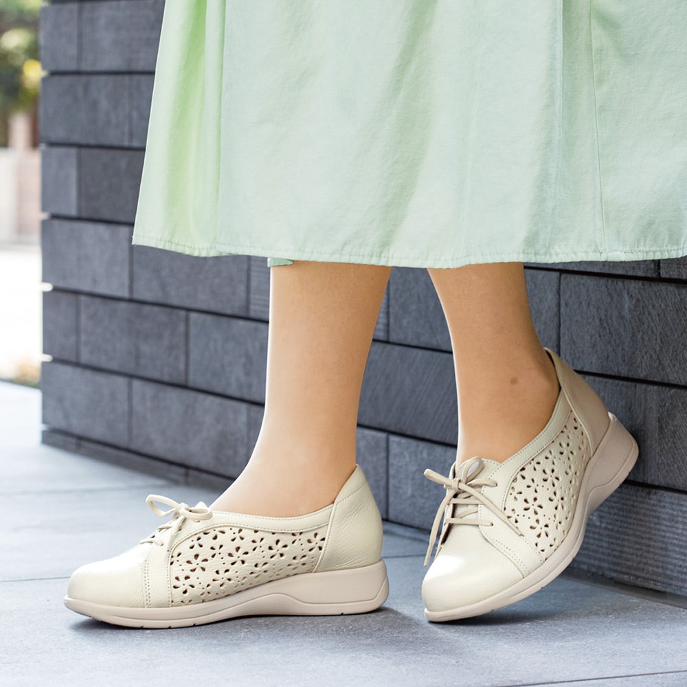 まるでスニーカーのような履き心地。パンツスタイルからスカートまで幅広く活躍します。