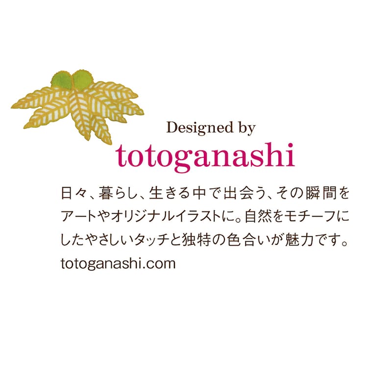 植物をモチーフにした「totoganashi」の大人っぽいテキスタイルだから、トップスがシンプルでもこなれ感アップ。